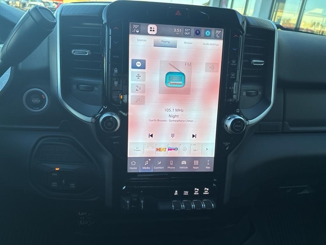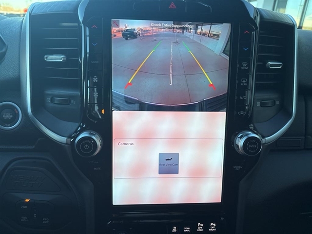 | Visit DriveUconnect.com; For More Info | Call 800-643-2112; Integrated Voice Command with Bluetooth; Emergency Vehicle Alert System (EVAS); 12" Touchscreen Display; Premium Cloth 40/20/40 Bench Seat; Glove Box Lamp; Auto Power-Folding Mirrors; Footwell Courtesy Lamp; Anti-Spin Differential Rear Axle; Mirror Running Lights; MOPAR Deployable Bed Step; Alexa Built-In; Apple CarPlay; Power-Adjustable Convex Aux Mirrors; Forward and Reverse Utility Lights; Locking Lower Glove Box; Remote Start System; 9 Alpine Speakers with Subwoofer; Disassociated Touchscreen Display; Dual Glove Boxes; 2nd Row in Floor Storage Bins; Rear View Auto Dim Mirror; Rear Dome with On/off Switch Lamp; LED Bed Lighting; Connectivity - US/Canada; GPS Navigation; 4G LTE Wi-Fi Hot Spot; GPS Antenna Input; Exterior Mirrors with Heating Element; SiriusXM with 360L; Global Telematics Box Module; Connected Travel and Traffic Services; Foam Bottle Insert (door Trim Panel); Black Exterior Mirrors; Big Horn Instrument Panel Badge; Off-Road Info Pages; Selectable Tire Fill Alert; Trailer Tow Pages; HD Radio; Uconnect 5 Navigation with 12.0" Display Radio; Power Heated Folding Telescopic Mirrors; Exterior Mirrors with Supplemental Signals; Steering Wheel Mounted Audio Controls; Exterior Mirrors Courtesy Lamps; Air Conditioning ATC with Dual Zone Control; MOPAR Spray in Bedliner; Power Adjust Mirrors; Luxury Steering Wheel; Power Telescoping Mirrors |