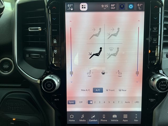 Quick Order Package 24Z Big Horn. Cold Weather Group: Engine Block Heater; MOPAR Winter Front Grille Cover. Big Horn Level 1 Plus Equipment Group: Google Android Auto; SiriusXM Radio Service; For Details Visit DriveUconnect.com; For More Info. Call 800-643-2112; Integrated Voice Command with Bluetooth; Emergency Vehicle Alert System (EVAS); 12" Touchscreen Display; Glove Box Lamp; Auto Power-Folding Mirrors; Footwell Courtesy Lamp; Mirror Running Lights; MOPAR Deployable Bed Step; Alexa Built-In; Apple CarPlay; Power-Adjustable Convex Aux Mirrors; Forward and Reverse Utility Lights; Locking Lower Glove Box; Remote Start System; 9 Alpine Speakers with Subwoofer; Disassociated Touchscreen Display; Dual Glove Boxes; 2nd Row in Floor Storage Bins; Rear View Auto Dim Mirror; Rear Dome with On/off Switch Lamp; LED Bed Lighting; Connectivity - US/Canada; GPS Navigation; 4G LTE Wi-Fi Hot Spot; GPS Antenna Input; Exterior Mirrors with Heating Element; SiriusXM with 360L; Global Telematics Box Module; Connected Travel and Traffic Services; Foam Bottle Insert (door Trim Panel); Black Exterior Mirrors; Big Horn Instrument Panel Badge; Off-Road Information Pages; Selectable Tire Fill Alert; Trailer Tow Pages; HD Radio; Uconnect 5 Navigation with 12.0" Display Radio; Power Heated Fold Telescopic Mirrors; Exterior Mirrors with Supplemental Signals; Steering Wheel Mounted Audio Controls; Exterior Mirrors Courtesy Lamps; Air Conditioning ATC with Dual Zone Control; MOPAR Spray in Bedliner; Power Adjust Mirrors; Luxury Steering Wheel; Power Telescoping Mirrors. Heated Seats and Wheel Group: Heated Front Seats; Heated Steering Wheel. Chrome Flat Wheel-To-wheel Side Steps. 5th Wheel/gooseneck Towing Prep Group. MyFlexCare Service Diesel. Premium Cloth Bucket Seats. Remote Start System. Rear Wheelhouse Liners. Power 2-Way Driver Lumbar Adjust. Clearance Lamps. **Equipment listed is based on original vehicle build and subject to change. Please confirm the accuracy of the included equipment by calling the dealer prior to purchase.**