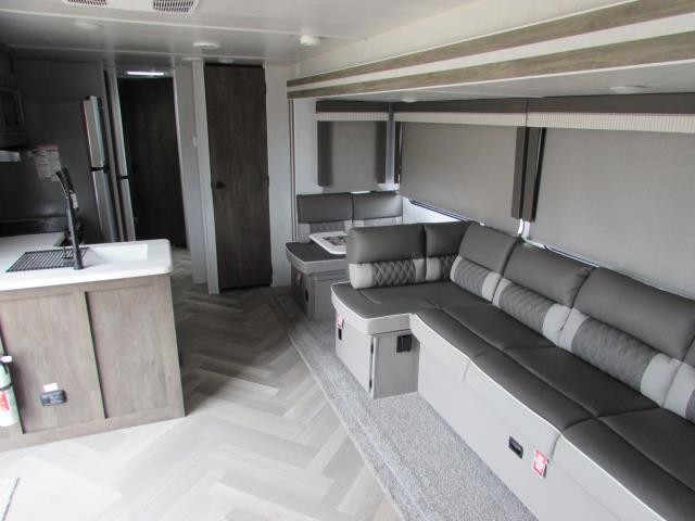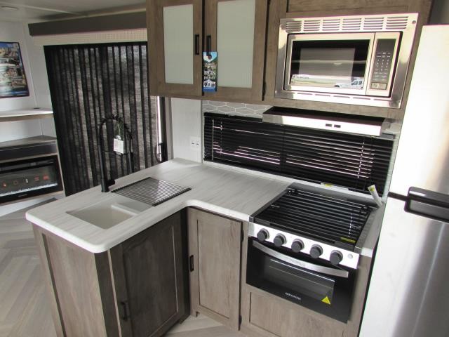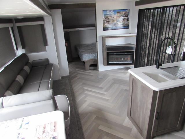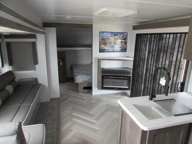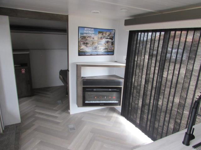 After you've had a long day of sightseeing and adventuring, you will certainly appreciate having this Salem travel trailer to come back to! If you aren't ready to stay indoors for the night, you can keep the party going outside under the 18' awning, and if you need any extra lawn chairs, you can grab them from the pass-through storage compartment. And, you don't have to stop enjoying a good fire just because you have to go inside because the interior fireplace will provide great ambiance. There are dual entry doors which will definitely come in handy when camping with a large group, and there is plenty of seating space on the booth dinette and versa lounge in the main living area.