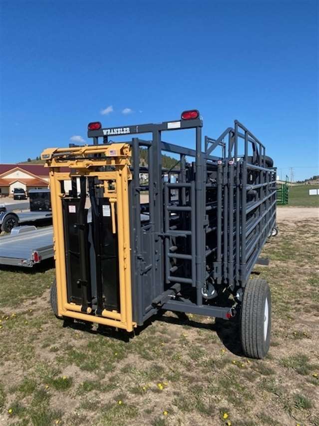 2024 Wrangler Super Large gooseneck Portable corral with neck extension and Foremost self catch headgate, Has Five 20ft panels on small side with 1 being a bow gate for sorting, Large side has Ten 20ft panels with 1 being a bow gate to sort out of. Adjustable alley way with built in palpation door, Head gate extension with Foremost self catch headgate, Spare tire and mount, 2 Position axle spots so it can be towed at highway speeds, Rear tow hitch, Hydraulic front and rear jacks with solar charger for easy setup, Super large will hold 150 pairs or 300 cows.