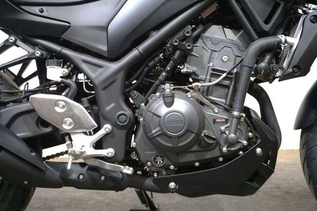 A slimmer seat and side covers improve the rider`s foot reach to the ground while retaining the MT-03`s comfortable riding position. Additionally, a new passenger seat design is wider and the cushioning is thicker for greater passenger comfort.
