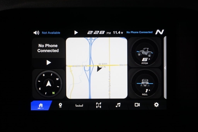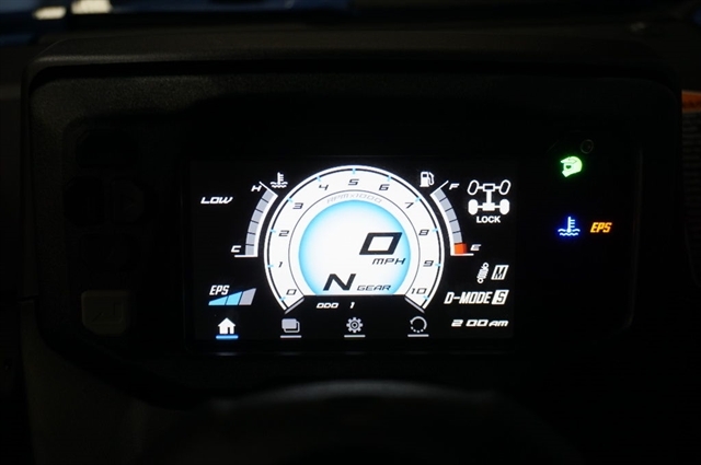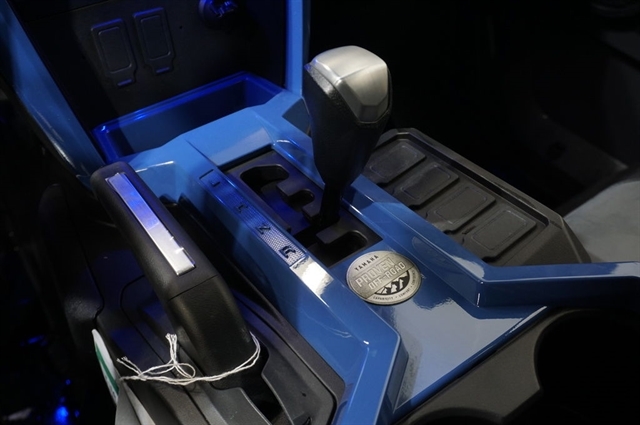 For accessibility in low-light conditions, the Wolverine RMAX4 1000 Limited features an interior light package to easily navigate controls. The blue LED lighted switches, floor lights and console lighting complement the automotive-inspired cockpit and are color-matched to the blue-backlit meter for a high-quality feel and premium look.