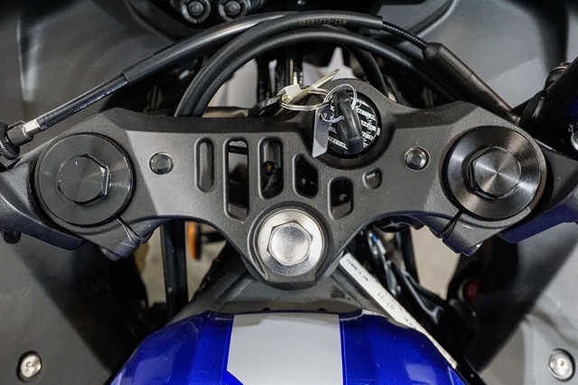 The YZF-R3 features an inverted fork with optimized spring and damping settings, significantly improving fork rigidity, front-end feedback and control. The design also includes a YZR-M1-inspired top clamp for improved supersport style.