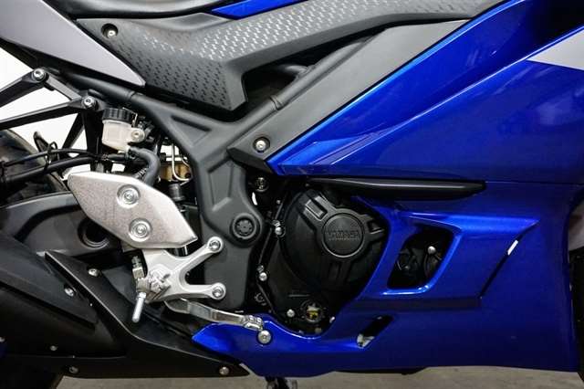 The R3’s inverted fork works with a Monocross rear shock to provide exceptional handling, with balanced chassis rigidity, a near 50/50 weight balance, and damping and spring settings designed for a wide range of road conditions.