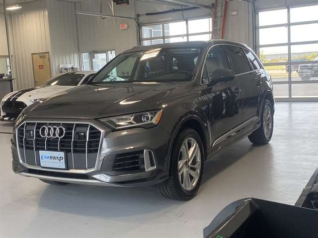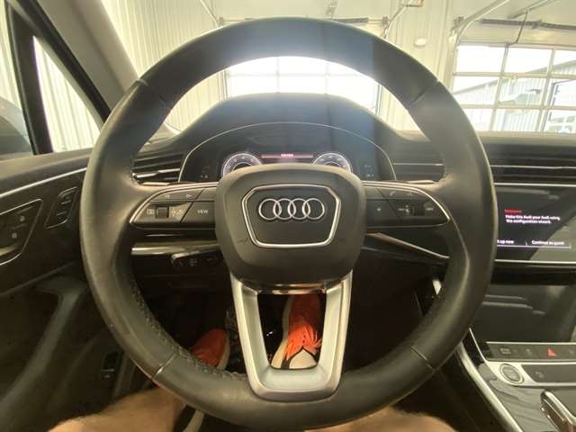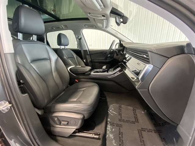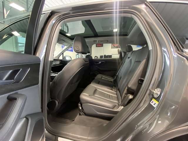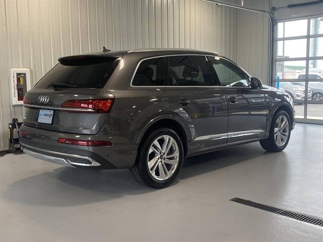 Fully detailed, 10 Speakers, 3.204 Axle Ratio, 3rd row seats: bench, 4-Wheel Disc Brakes, ABS brakes, Air Conditioning, Alloy wheels, AM/FM radio: SiriusXM w/ 360L, Auto High-beam Headlights, Auto-dimming door mirrors, Auto-dimming Rear-View mirror, Automatic temperature control, Brake assist, Bumpers: body-color, Compass, Delay-off headlights, Driver door bin, Driver vanity mirror, Dual front impact airbags, Dual front side impact airbags, Electronic Stability Control, Emergency communication system: Audi connect CARE, Exterior Parking Camera Rear, Four wheel independent suspension, Front anti-roll bar, Front Bucket Seats, Front Center Armrest, Front dual zone A/C, Front fog lights, Front reading lights, Fully automatic headlights, Garage door transmitter: HomeLink, Genuine wood door panel insert, Heated door mirrors, Heated Front Bucket Seats, Heated front seats, Illuminated entry, Leather Seating Surfaces, Leather Shift Knob, Leather steering wheel, Low tire pressure warning, Memory seat, Navigation system: Audi MMI Navigation plus with Touch Response, Occupant sensing airbag, Outside temperature display, Overhead airbag, Overhead console, Panic alarm, Passenger door bin, Passenger vanity mirror, Power door mirrors, Power driver seat, Power Liftgate, Power moonroof: Panoramic, Power passenger seat, Power steering, Power windows, Radio data system, Radio: Audi Sound System, Rain sensing wipers, Rear air conditioning, Rear anti-roll bar, Rear fog lights, Rear reading lights, Rear seat center armrest, Rear side impact airbag, Rear window defroster, Rear window wiper, Reclining 3rd row seat, Remote keyless entry, Roof rack: rails only, Security system, Speed control, Speed-sensing steering, Split folding rear seat, Spoiler, Steering wheel memory, Steering wheel mounted audio controls, Tachometer, Telescoping steering wheel, Tilt steering wheel, Traction control, Trip computer, Turn signal indicator mirrors, Variably intermittent wipers, Wheels: 19`` 5-Arm-Star Design. 2023 Audi Q7 55 Premium Plus quattro quattro 8-Speed Automatic with Tiptronic 3.0L TFSI