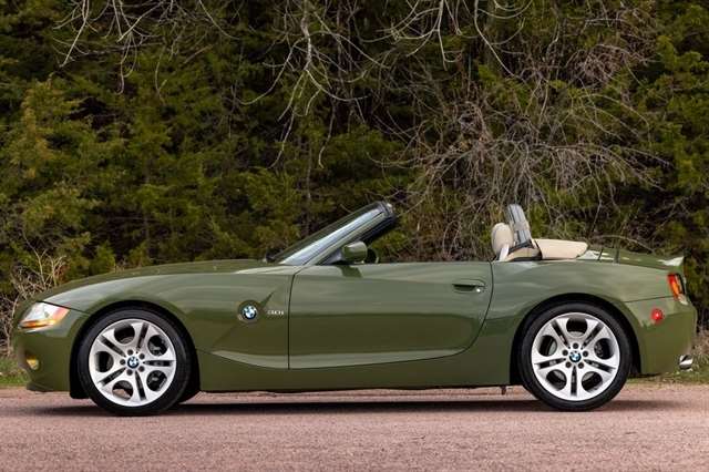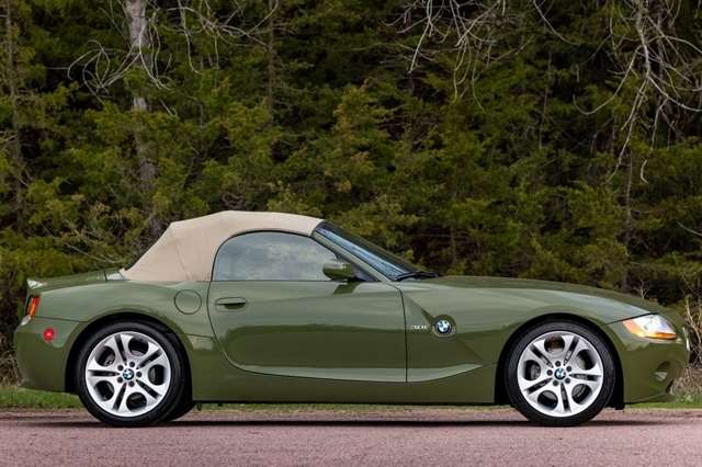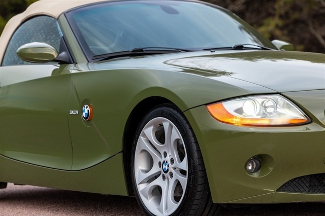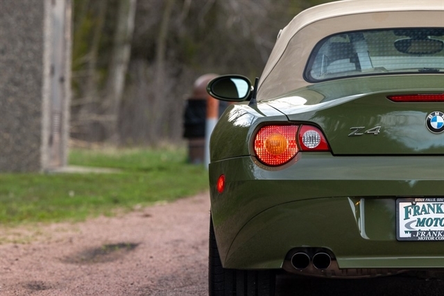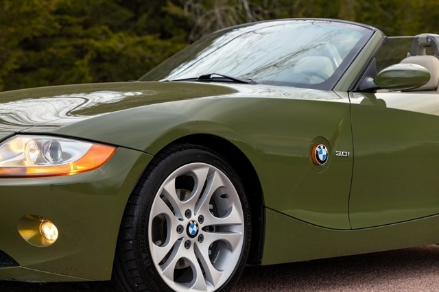 Urban Green 2003 BMW Z4 3.0i RWD 6-Speed Manual Sequential 3.0L I6 DOHC 24V *Leather Seats, Heated Seats, Automatic Headlights, Keyless Entry, Premium Wheels, 18 x 8 Front & 18 x 8.5 Rear Ellipsoid Alloy Wheels, 8-Way Power Seats w/3-Way Driver Memory, Auto-Dimming Interior Mirrors, Automatic Air Conditioning, Convenience Package, Dynamic Drive Control (Sport Button), Front fog lights, Fully Automatic Power Top, Outside temperature display, Premium Hi-Fi Sound System, Premium Package, Rain Sensor, Sport Package, Sport Suspension, Telescoping steering wheel.