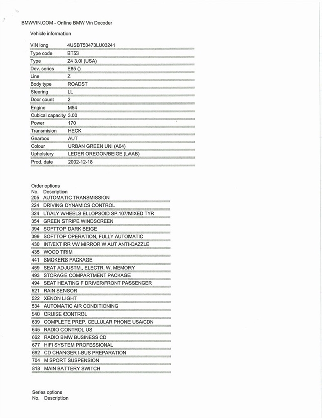 Fun fact: The Urban Green exterior paired with Tan Leather interior is an exceptionally rare combination, making this Z4 even more desirable. Production numbers indicate that only a small percentage of Z4 models were produced with this specific color scheme, adding an extra layer of exclusivity to this already impressive vehicle. Don`t let this rarity slip through your fingers!