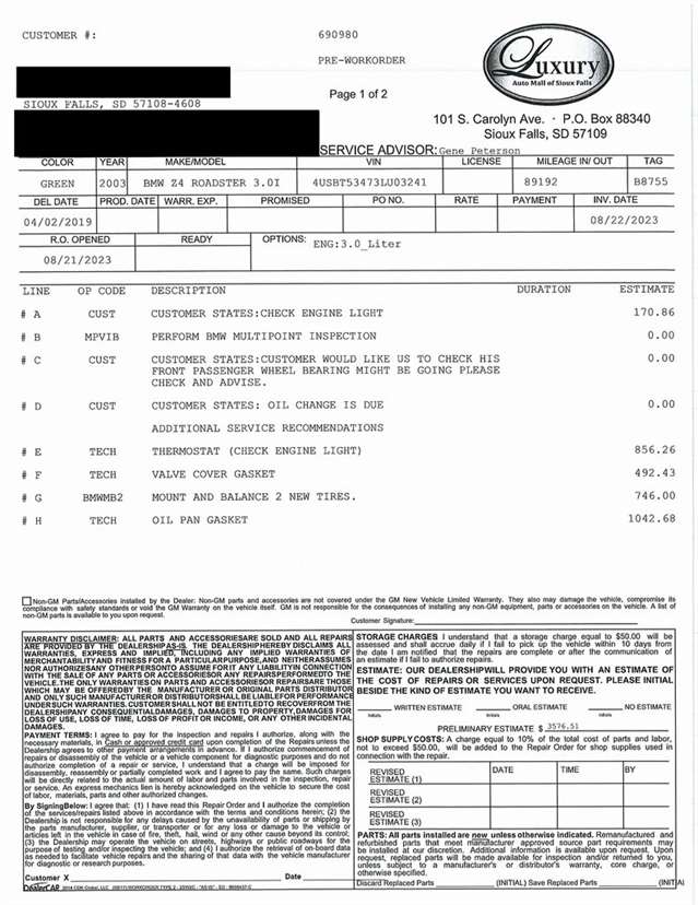 Cruise the streets in style with our latest arrival - a sleek 2003 BMW Z4 3.0i in the striking Urban Green hue, paired with luxurious Tan Leather interior. This beauty comes equipped with an Automatic Transmission, ensuring a smooth ride every time. With only 70K miles on the odometer, it`s ready to hit the road and turn heads wherever it goes! Don`t miss out on the chance to own this iconic piece of automotive excellence. Visit Frankman Motors today to take it for a spin!