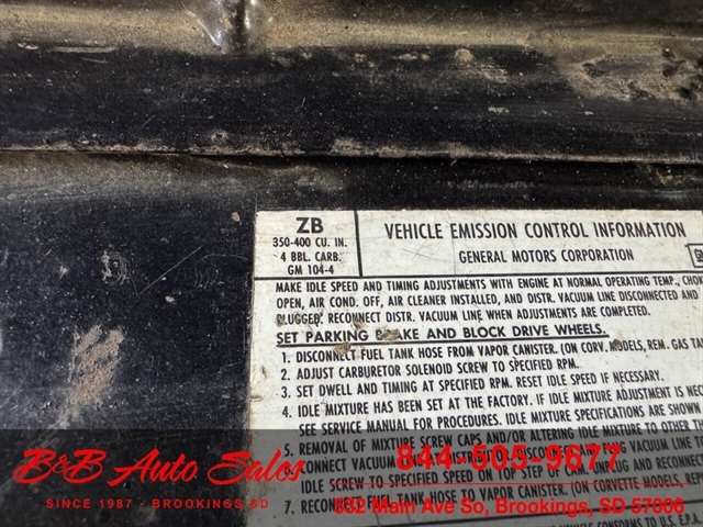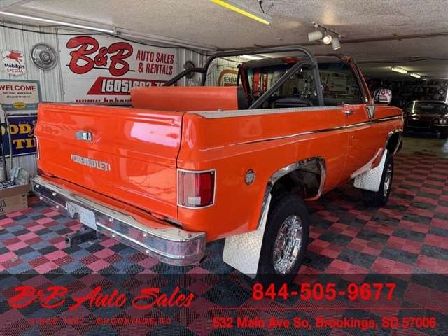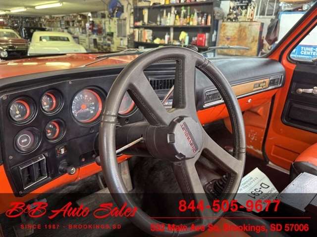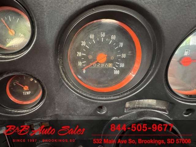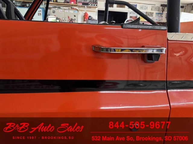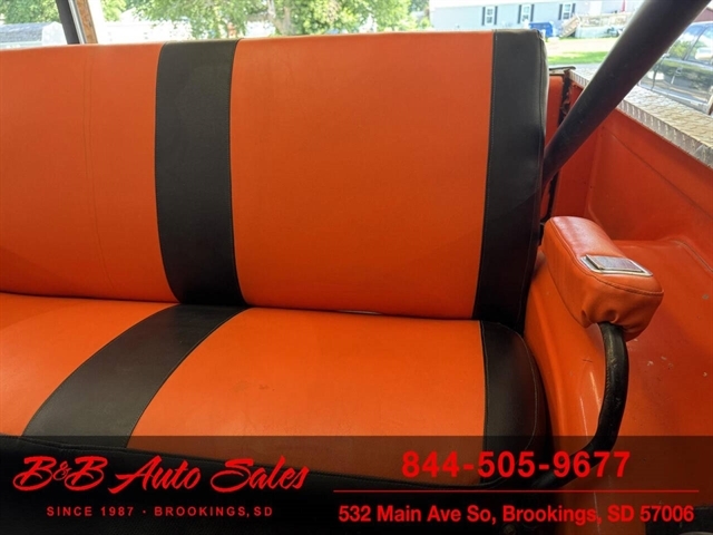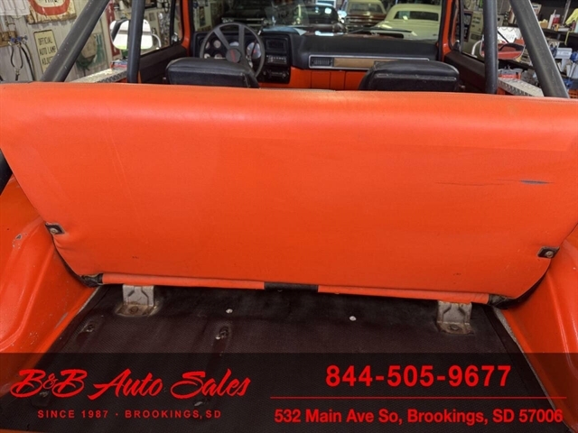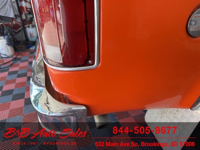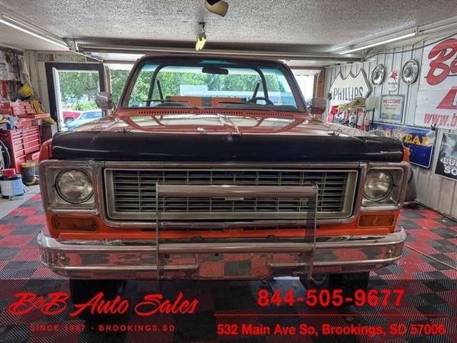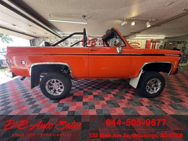 *350 V8*Automatic* 4x4*Lifted*Full topMECHANICAL- This Blazer has gone thru our inspection. Horn does not work. *REPLACED VALVE COVER GASKETS*NEW REAR GLASS WINDOW CHANNEL*REPLACED STEERING GEAR*REPLACEDD FUEL SENDING UNITEXTERIOR- The body is in good shape. The body has been redone in a custom Orange that still looks good after all these years. There are some chips that have been touched up . The truck is very clean with no rust. See the video for an up close inspection. Text Dirk at 605-695-7391 for running and driving video`sINTERIOR- The interior is in good shape. It has custom reupholstered seats that match the trucks paint. It has an aftermarket radio in center console.DIRK`S COMMENTS- With 38 years of experience I will give you my opinion of the Blazer. It is a cool truck with the full top that comes off. Only 73-75 Blazer`s/Jimmy`s had this. A nice driver that will be fun to cruise in. UNDERNEATH- The underneath is solid with no rust issues. History- A Blazer from here in South Dakota. TEST DRIVE- We personally test drive our vehicles so we know what they drive like. I have drove this one 10 miles and it drives good.Located in White,SD.BUY WITH CONFIDENCE as this 1974 Chevrolet Blazer has gone thru inspection and test drive. We personally work and drive these ourselves so can answer any questions you may have. We show you any issues with over 100 pictures and videos of a walk around, running and driving.VALUE- We price our vehicles to market value and try to be one of the best prices of vehicles in comparable condition. Our goal is to give you a good buy on a vehicle you are going to have fun with and enjoy. We do have a document fee but only $50 which is lower than most other dealers.LIKE IT OR RETURN IT- As being in business for 38 years we do not want to sell anybody a vehicle they do not want. As many of our vehicles are sold site unseen we will take the vehicle back and give a refund minus shipping and a restocking fee. You are responsible for the shipping both ways and a $1000 restocking fee. You have 3 days to notify us you are not happy with the vehicle and we will start the return process. Ask for more details.VIDEOS- Call, text or email for videos of driving the vehicle and of the engine running and accessories working. Text Dirk at 605-695-7391. Click here to apply for financing: Credit App Call or text Dirk at 605-695-7391 or Darren 605-695-9555 with any questions. B and B Auto Sales, 324 W Main White,SD 57006