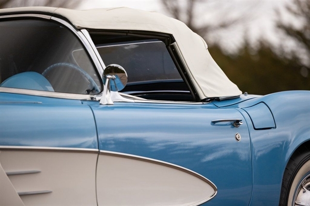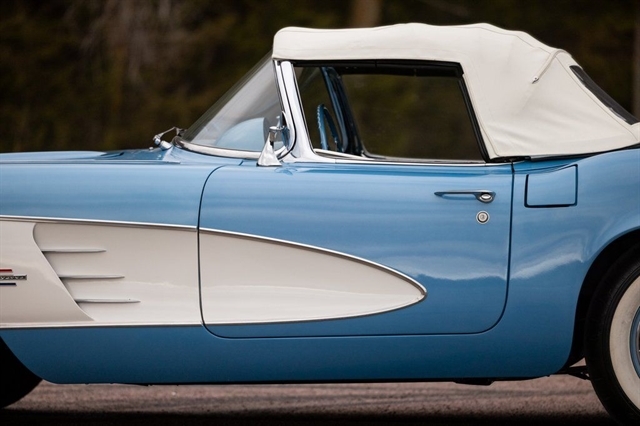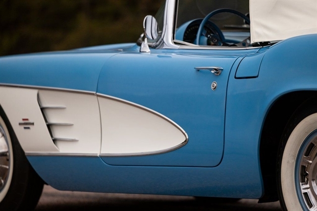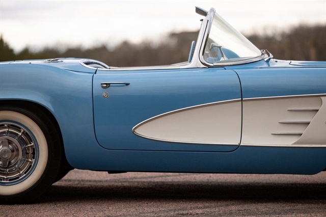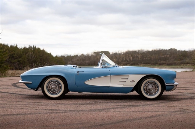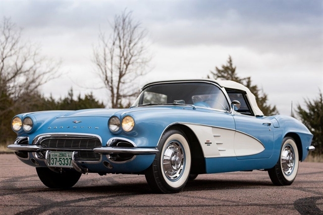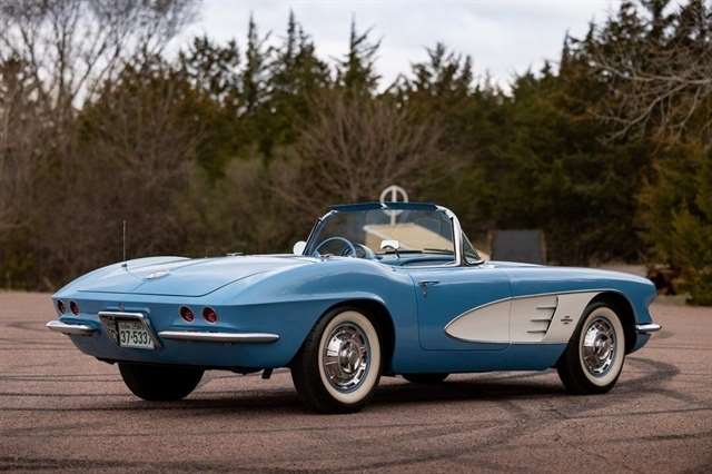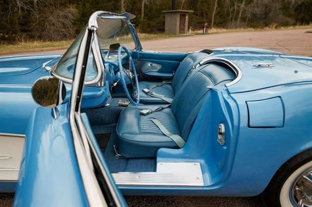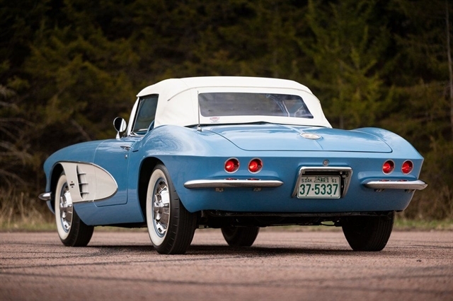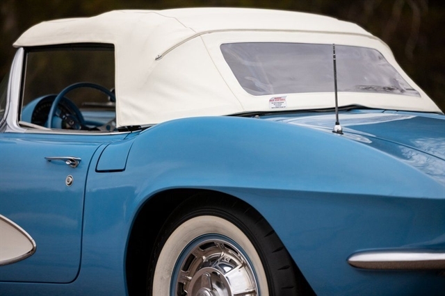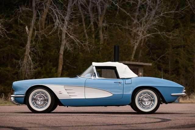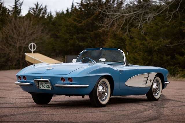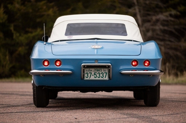 1961 Corvette for sale, classic Corvette convertible, C1 Corvette Blue White, Powerglide Corvette, original 1961 Chevrolet Corvette, Corvette with window sticker, Wonderbar radio Corvette, Jay-Shon Chevrolet Corvette, South Dakota Corvette, Sioux Falls Corvette Club, dual top Corvette, 283 V8 Corvette, vintage Chevy convertible, classic car dealership South Dakota, 1961 Corvette Blue White combo, Corvette cruise Black Hills, Frankman Motors classic cars
