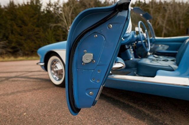 Step into history with this documented 1961 Chevrolet Corvette Convertible, originally sold in Sioux Falls and owned by a founder of the Sioux Falls Corvette Club. Factory-finished in Blue with White coves and Blue trim, this rare C1 comes with both tops, original window sticker, and strong local history.