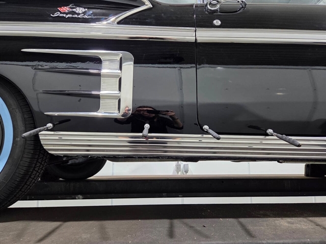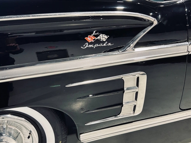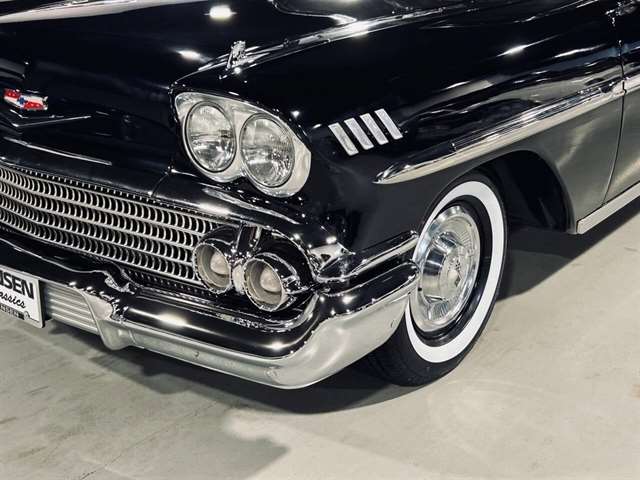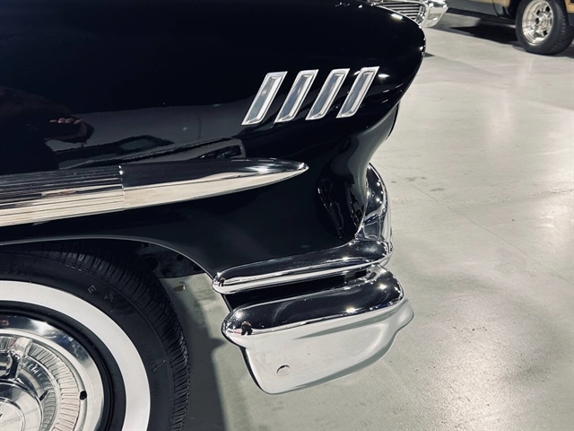 1958 Chevrolet Impala • Fresh professional restoration • New black paint on a rust-free body • New correct interior • All Stainless has been polished • Bumpers have been plated • New Whiteside wall tires • Strong running 348 V8 • GM power glide transmission • Power steering • Turnkey condition