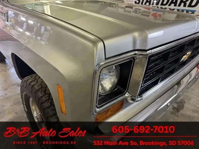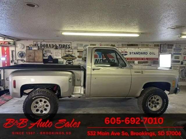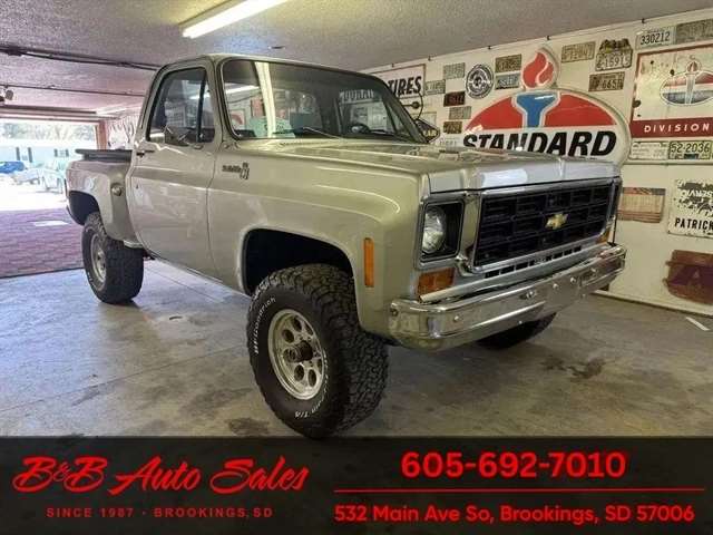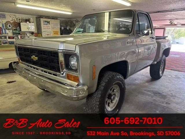 *5.3 VORTEC ENGINE*4 SPEED MANUAL*AC*DAKOTA DIGITAL GAUGES*Shortbox 4x4 MECHANICAL- This K10 Custom has gone thru our inspection. It has new wipers. The speedometer does not work. Dakota digital gauges so I`m guessing is able to work but I haven`t been able to get it to. EXTERIOR- The body is in good shape. It has had a repaint at one time. It has a great shine to it. It does have some rock chips from driving it. Also has a small rust bubble on front of drivers door and cab corner. See the video for an up close inspection. Text Dirk at 605-695-7391 for running and driving video`sINTERIOR- The interior is in great shape with no issues.DIRK`S COMMENTS- With 38 years of experience I will give you my opinion of the K10 Custom. It is a great driving and running truck with the 5.3 engine. UNDERNEATH- The underneath is solid and has been detailed. History- A truck from California. TEST DRIVE- We personally test drive our vehicles so we know what they drive like. I have drove this one 15 miles and it drives good.Located in White,SDBUY WITH CONFIDENCE as this 1973 Chevrolet K10 Custom has gone thru inspection and test drive. We personally work and drive these ourselves so can answer any questions you may have. We show you any issues with over 100 pictures and videos of a walk around, running and driving.VALUE- We price our vehicles to market value and try to be one of the best prices of vehicles in comparable condition. Our goal is to give you a good buy on a vehicle you are going to have fun with and enjoy. We do have a document fee but only $50 which is lower than most other dealers.LIKE IT OR RETURN IT- As being in business for 37 years we do not want to sell anybody a vehicle they do not want. As many of our vehicles are sold site unseen we will take the vehicle back and give a refund minus shipping and a restocking fee. You are responsible for the shipping both ways and a $1000 restocking fee. You have 3 days to notify us you are not happy with the vehicle and we will start the return process. Ask for more details.VIDEOS- Call, text or email for videos of driving the vehicle and of the engine running and accessories working. Text Dirk at 605-695-7391. Click here to apply for financing: Credit App Call or text Dirk at 605-695-7391 or Darren 605-695-9555 with any questions. B and B Auto Sales, 324 W Main White,SD 57276