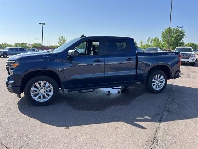 Northsky Blue Metallic 2023 Chevrolet Silverado 1500 Custom 4WD 8-Speed Automatic 2.7L Turbo *Bluetooth, Backup Camera, Collision Warning System, Touchscreen Controls, Keyless Access with Push Button Start, Apple CarPlay, Android Auto, Keyless Entry, Premium Wheels, Trailer Hitch, Remote Start, 8-Speed Automatic, 4WD, Black Cloth, 10-Way Power Driver Seat w/Lumbar, 120-Volt Bed Mounted Power Outlet, 120-Volt Instrument Panel Power Outlet, 3.5`` Monochromatic Display Driver Info Center, Bluetooth® For Phone, Chevrolet Connected Access Capable, Color-Keyed Carpeting Floor Covering, Compass, Custom Convenience Package, Custom Value Package, Deep-Tinted Glass, Dual Rear USB Ports (Charge Only), Electric Rear-Window Defogger, Electrical Steering Column Lock, Electronic Cruise Control, EZ Lift Power Lock & Release Tailgate, Front Frame-Mounted Black Recovery Hooks, Front Rubberized Vinyl Floor Mats, Fully automatic headlights, HD Rear Vision Camera, High Capacity Suspension Package, Hitch Guidance, LED Cargo Area Lighting, Manual Tilt Wheel Steering Column, OnStar & Chevrolet Connected Services Capable, Power Front Windows w/Driver Express Up/Down, Power Front Windows w/Passenger Express Down, Power Rear Windows w/Express Down, Preferred Equipment Group 1CX, Premium audio system: Chevrolet Infotainment 3, Rear 60/40 Folding Bench Seat (Folds Up), Rear Rubberized-Vinyl Floor Mats, Remote Keyless Entry, Remote Vehicle Starter System, SiriusXM Radio, Theft Deterrent System (Unauthorized Entry), Trailering Package, Wheels: 20`` x 9`` Bright Silver Painted Aluminum, Wi-Fi Hot Spot Capable, Wireless Phone Projection.