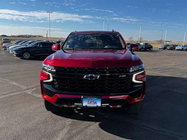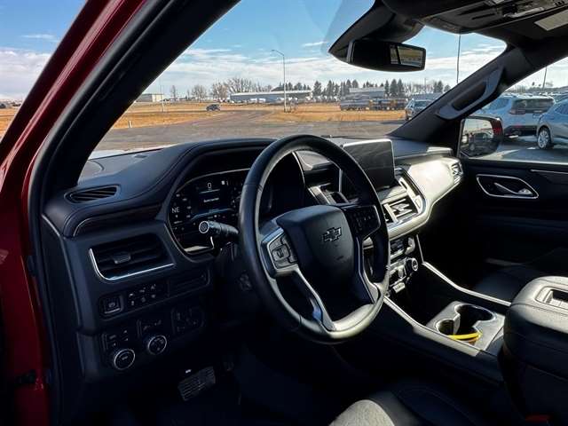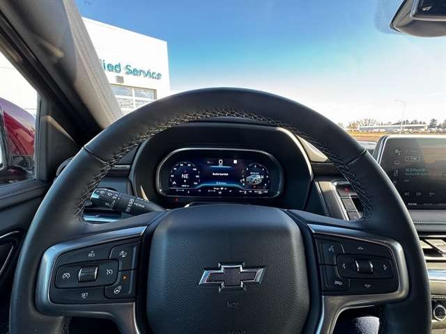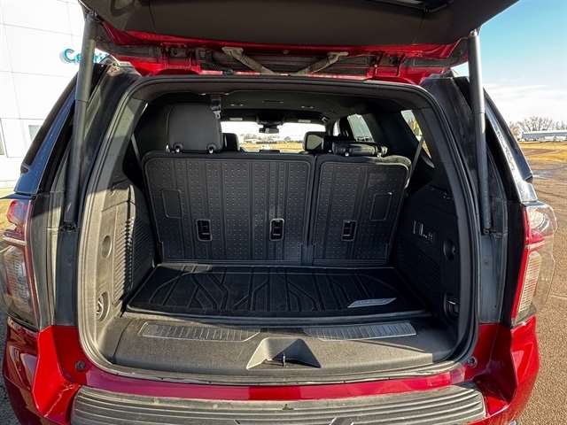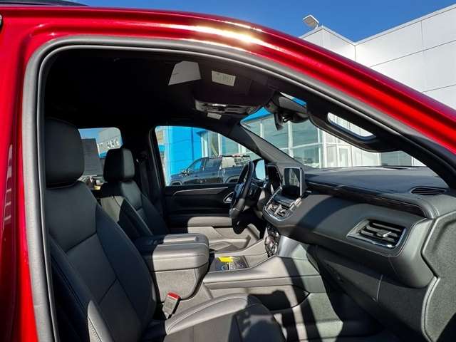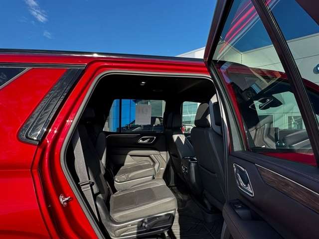 Advanced Trailering Package (Hitch Guidance w/Hitch View, Integrated Trailer Brake Controller, and Smart Trailer Integration Indicator), Driver Alert Package (Lane Change Alert w/Side Blind Zone Alert and Rear Cross Traffic Alert), License Plate Front Mounting Package, Luxury Package (2nd Row Pwr Release 60/40 Split-Folding Bench Seat, 3rd Row 60/40 Power-Folding Split-Bench Seat, HD Surround Vision, Heated 2nd Row Outboard Seats, Heated Steering Wheel, Memory Settings, Outside Heated Power-Adjustable Mirrors, Power Tilt & Telescopic Steering Column, and Rear Pedestrian Alert), Max Trailering Package (Extra Capacity Cooling System), Preferred Equipment Group 2Z7 (1st & 2nd Row Color-Keyed Carpeted Floor Mats, 2-Speed Active Electronic AutoTrac Transfer Case, Auto-Dimming Inside Rear-View Mirror, Black Tubular Assist Steps, Bose 9-Speaker Stereo Audio System Feature, Bright Front & Rear Door Sill Plates, Color-Keyed Carpeting Floor Covering, Driver & Front Outboard Passenger Airbags, Enhanced Driver Information Center, Floor Console w/Storage Area, Front High-Approach Angle Fascia, Hands-Free Rear Power Programmable Liftgate, Hill Descent Control, Infotainment Display, LED Daytime Running Lamps, Memory Settings for Driver, Red Horizontal-Mounted Recovery Hooks, Remote Start, SiriusXM Radio w/360L, Universal Home Remote, Wireless Charging, and Wrapped Steering Wheel), 4WD, Black Leather, 10-Way Power Driver & Passenger Seat Adjusters, 1st & 2nd Rows Premium Floor Liners (LPO), 3.23 Rear Axle Ratio, 3rd row seats: split-bench, 4-Wheel Disc Brakes, 9 Speakers, ABS brakes, Air Conditioning, All-Weather Cargo Mat (LPO), Alloy wheels, AM/FM radio: SiriusXM with 360L, Apple CarPlay/Android Auto, Auto High-beam Headlights, Auto-dimming Rear-View mirror, Automatic temperature control, Brake assist, Bumpers: body-color, Compass, Delay-off headlights, Driver door bin, Driver vanity mirror, Dual front impact airbags, Dual front side impact airbags, Electronic Stability Control, Emergency communication system: OnStar and Chevrolet connected services capable, Floor Console, Four wheel independent suspension, Front anti-roll bar, Front Bucket Seats, Front Center Armrest, Front dual zone A/C, Front High-Back Reclining Bucket Seats, Front reading lights, Fully automatic headlights, Garage door transmitter, Heated door mirrors, Heated Driver & Front Passenger Seats, Heated front seats, Illuminated entry, Leather-Appointed Seat Trim, Low tire pressure warning, Memory seat, Navigation System, Occupant sensing airbag, Outside temperature display, Overhead airbag, Overhead console, Panic alarm, Passenger door bin, Passenger vanity mirror, Power door mirrors, Power driver seat, Power Liftgate, Power passenger seat, Power Release 2nd Row Bucket Seats, Power steering, Power windows, Premium audio system: Chevrolet Infotainment 3 Premium, Premium Smooth Ride Suspension, Radio: Chevrolet Infotainment 3 Premium System, Rain sensing wipers, Rear air conditioning, Rear anti-roll bar, Rear reading lights, Rear seat center armrest, Rear window defroster, Rear window wiper, Remote keyless entry, Roof rack: rails only, Security system, Speed control, Speed-sensing steering, Split folding rear seat, Spoiler, Steering wheel mounted audio controls, Tachometer, Telescoping steering wheel, Tilt steering wheel, Traction control, Trip computer, Variably intermittent wipers, Voltmeter, and Wheels: 20`` x 9`` Machined Aluminum.