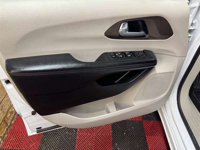 Our dealership has already run the CARFAX report and it is clean. A clean CARFAX is a great asset for resale value in the future. See what's behind you with the back up camera on it. Bluetooth technology is built into this unit, keeping your hands on the steering wheel and your focus on the road. This mini van has a V6, 3.6L high output engine. With the keyless entry system on this 2017 Chrysler Pacifica you can pop the trunk without dropping your bags from the store. Front wheel drive on the Chrysler Pacifica gives you better traction and better fuel economy. Set the temperature exactly where you are most comfortable in this mini van. The fan speed and temperature will automatically adjust to maintain your preferred zone climate. The Chrysler Pacifica embodies class and sophistication with its refined white exterior. With the adjustable lumbar support in this mini van your back will love you.