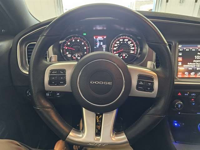 * With an aggressively sculpted body, featuring scalloped doors and hood, aerodynamic curves and throwback styling, the 2014 Dodge Charger is a sight to behold. Available on select models, High Intensity Discharge headlamps illuminate the path ahead, and the signature 164-LED racetrack taillamps smolder for others to follow. Inside, experience the luxury of an interior lined with soft-touch materials, available heated front and rear seats in select models, power driver seat, and noise-dampening features to help keep things quiet. Depending on trim level, you can choose from the comfort of various seating materials like sport cloth, or performance perforated leather seats among others. For technology and music enthusiasts, treat yourself to the 8.4-inch Uconnect Touchscreen with Navigation or the Beats Audio Group, with 10 speakers, including a subwoofer and 552-watt amp, both available on select models. The Charger has incredible engine and transmission choices as well. The SE, SXT, and SXT PLUS trims are powered by a 3.6-Liter, Pentastar VVT V6 Engine with 292 horsepower. The SE comes with a 5-Speed Automatic or is available with 8-speed automatic with E-shift. The SXT and SXT PLUS both have 8-speed automatics with E-shift standard. The R/T, R/T PLUS, R/T ROAD & Track, and R/T MAX Trims give you 5.7-Liter, HEMI VVT V8 with Fuel Saver Technology, 370 Horsepower and 395 lb-ft of torque and are paired with 5-speed automatic transmission with AutoStick. Or for maximum exhilaration, get the SRT SUPER BEE or the SRT. Both have a 6.4-Liter HEMI VVT V8 with 470 horsepower and 470 lb-ft of torque paired with a 5-speed automatic transmission with AutoStick. New for 2014, experience the Redline Package with a 3.6-liter V6 with 300 horsepower and cold-air induction, plus 20-inch Black Chrome aluminum wheels. Also for 2014, the AWD Sport gives you the option of a 370-horsepower V8 or a 300-horsepower V6. Drive the 2014 Dodge Charger today! Source: The Manufacturer Summary
