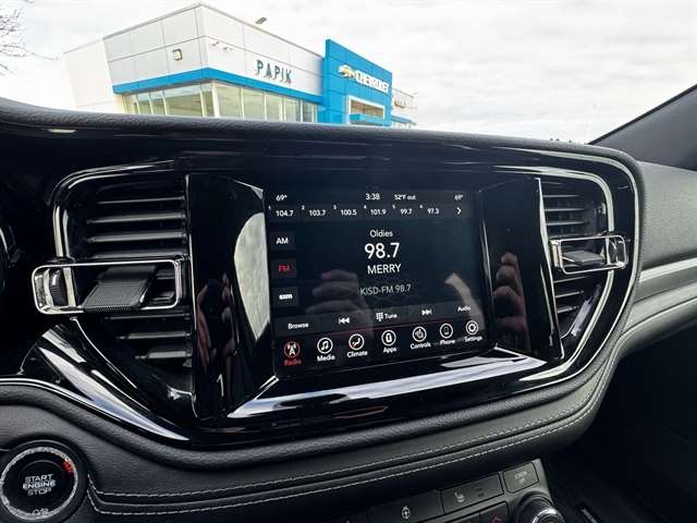 Blacktop Package (Gloss Black Badges, Gloss Black Exterior Mirrors, GT Gloss Black Badging, Satin Black Dodge Tail Lamp Badge, and Wheels: 20`` x 8.0`` Black Noise Aluminum), Quick Order Package 2BE GT Plus (115V Auxiliary Power Outlet, 180 Amp Alternator, Auto-Dimming Exterior Driver Mirror, Dual Remote USB Port - Charge Only, Exterior Mirrors w/Memory, Exterior Mirrors w/Supplemental Signals, Heated Front Seats, Heated Second Row Seats, Heated Steering Wheel, Leather Suede Bucket Seats, Power 6x9 Multi-Function Foldaway Mirrors, Power 8-Way Driver Memory 6-Way Passenger Seats, Power Driver/Passenger 4-Way Lumbar Adjust, Power Liftgate, Radio/Driver Seat/Mirrors Memory, Remote Start System, Security Alarm, Sun Visors w/Illuminated Vanity Mirrors, Tungsten Accent Stitching, and Universal Garage Door Opener), AWD, 2nd Row Fold/Tumble Captain Chairs, 2nd Row Mini Console w/Cupholders, 2nd Row Seat Mounted Inboard Armrests, 3.45 Rear Axle Ratio, 3rd Row Floor Mat & Mini Console, 3rd row seats: split-bench, 4-Wheel Disc Brakes, 6 Speakers, 6-Passenger Seating, ABS brakes, Air Conditioning, Alloy wheels, AM/FM radio: SiriusXM, Anti-whiplash front head restraints, Apple CarPlay, Apple CarPlay/Android Auto, Auto-dimming Rear-View mirror, Automatic temperature control, Brake assist, Bumpers: body-color, Cloth Bucket Seats w/Shift Insert, Compass, Delay-off headlights, Driver door bin, Driver vanity mirror, Dual front impact airbags, Dual front side impact airbags, Electronic Stability Control, Four wheel independent suspension, Front anti-roll bar, Front Bucket Seats, Front Center Armrest w/Storage, Front dual zone A/C, Front fog lights, Front License Plate Bracket, Front reading lights, Fully automatic headlights, Google Android Auto, GPS Antenna Input, Heated door mirrors, Illuminated entry, Integrated Center Stack Radio, Integrated Voice Command w/Bluetooth, Knee airbag, Leather steering wheel, Low tire pressure warning, Occupant sensing airbag, Outside temperature display, Overhead airbag, Overhead console, Panic alarm, ParkView Rear Back-Up Camera, Passenger door bin, Passenger vanity mirror, Power door mirrors, Power driver seat, Power steering, Power windows, Radio data system, Radio: Uconnect 4 w/8.4`` Display, Rear air conditioning, Rear anti-roll bar, Rear reading lights, Rear seat center armrest, Rear window defroster, Rear window wiper, Remote keyless entry, SiriusXM Satellite Radio, Speed control, Speed-sensing steering, Speed-Sensitive Wipers, Split folding rear seat, Spoiler, Steering wheel mounted audio controls, Tachometer, Telescoping steering wheel, Tilt steering wheel, Traction control, Trip computer, Tungsten Interior Accent Stitch, USB Host Flip, Variably intermittent wipers, Voltmeter, and Wheels: 20`` x 8.0`` Fine Silver.