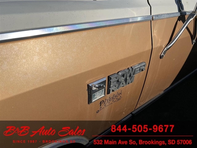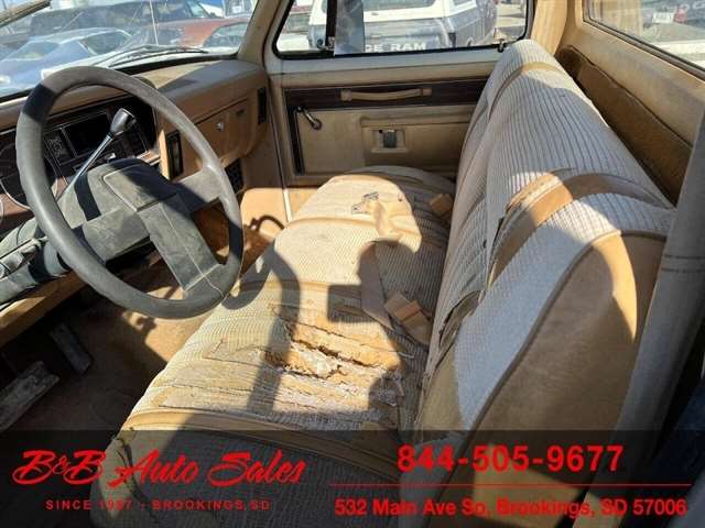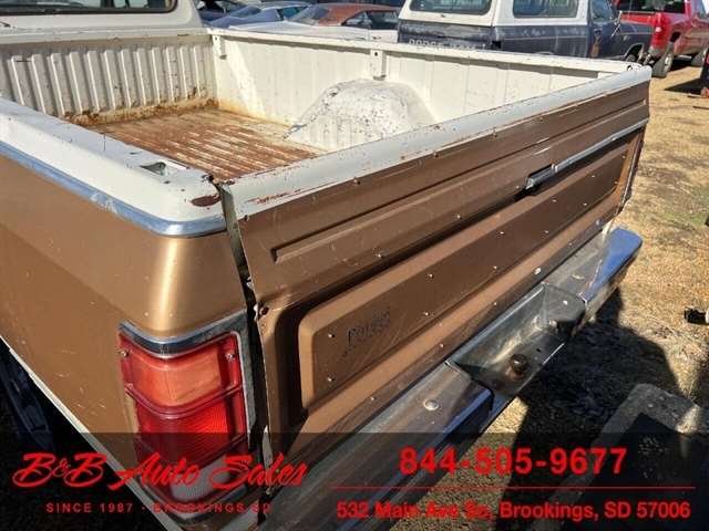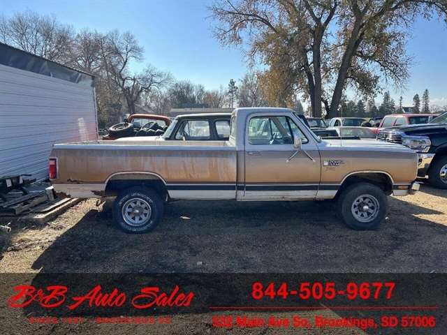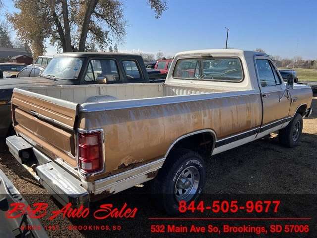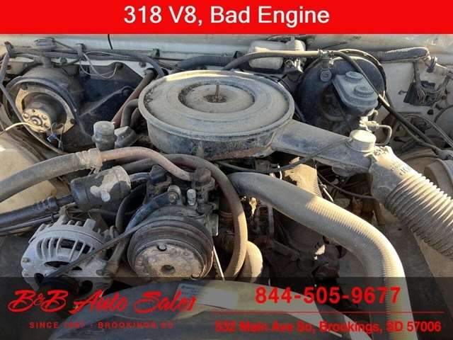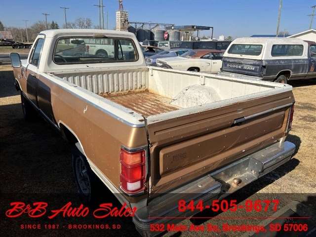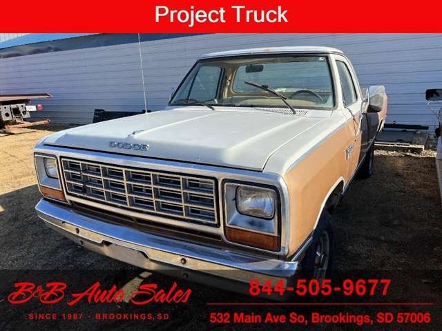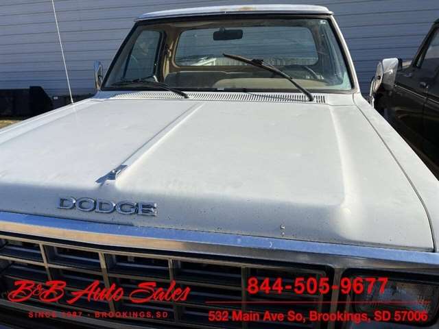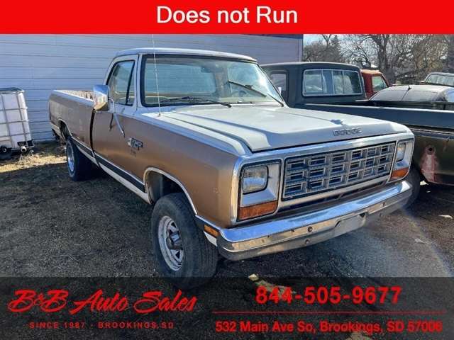 This 85 Dodge Ram 150 is a project truck that does not run. It has a 318 V8, Automatic and 4WD. It will trailer load. Mechanical- The engine is stuck and does not run. Truck is complete and will make a great project. Exterior- The body is in good shape as rust goes . It does have some scratches and dents and right rear boxside has some rust behind the wheel. See the video for an up close inspection. Text Dirk at 605-695-7391 with any questions. Interior- The interior is complete. The seat is tore and headliner sags. HISTORY- This Pickup came from western South Dakota. Call Dirk with any questions at 605-692-7010.B and B Auto Sales, 532 Main Ave So Brookings SD 57006