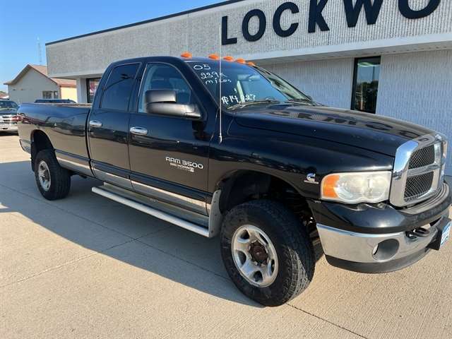 The satellite radio system in this 1 ton pickup gives you access to hundreds of nation-wide radio stations with a clear digital signal. The Dodge Ram Pickup has a 6 Cyl, 5.9L high output engine. This model has four wheel drive capabilities. It is painted with a sleek and sophisticated black color. Maintaining a stable interior temperature in this vehicle is easy with the climate control system. Easily set your speed in this Dodge Ram Pickup with a state of the art cruise control system. Increase or decrease velocity with the touch of a button. The Dodge Ram Pickup has a diesel engine. The fog lights cut through the weather so you can see what's ahead. Anti-lock brakes are standard on the Dodge Ram Pickup. This model has an automatic transmission. Help alleviate lower back pain with the driver seat lumbar support in the Dodge Ram Pickup. Get the big jobs done with this one-ton truck. From hauling to towing it is ready for your toughest jobs.