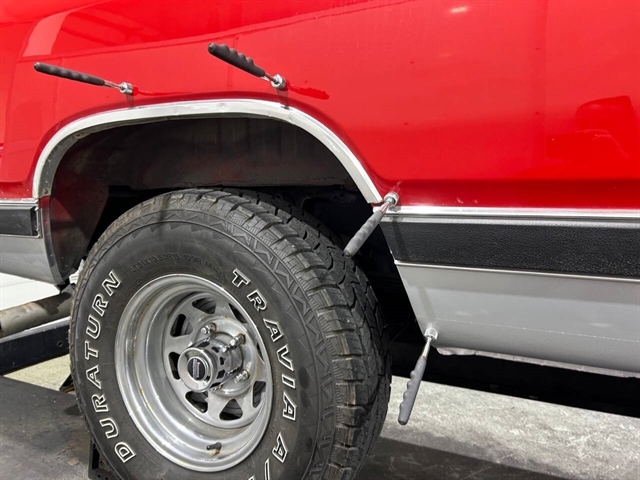 1984 Dodge Ramcharger • Royal SE 150 • 360 cubic inch V-8 engine • 4x4 auto hubs • New 4 barrell Edelbrock carburetor • Chrysler 3 speed automatic transmission • New HEI distributor • Factory air conditioning – blows cold • Power windows • Power steering • Power front disc brakes • Functioning cruise control • Oversized all terrain tires • American racing wheels • Pioneer stereo