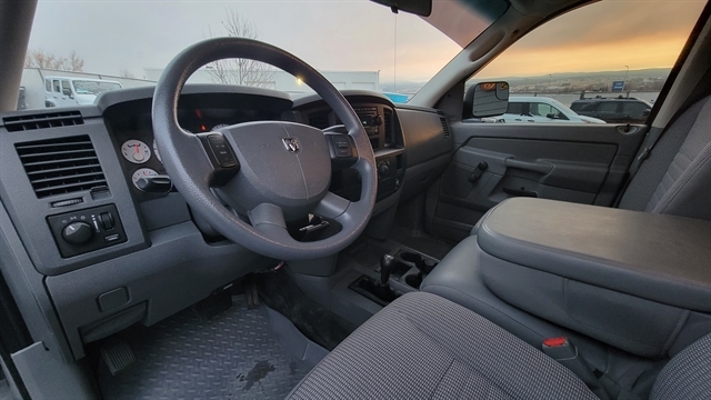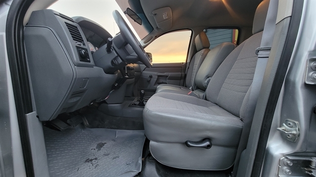 CHECK OUT THIS WORK HORSE! 2008 RAM 2500 ST, QUAD CAB, LONG BOX POWERD BY THE 5.7L V8 GAS ENGINE, AUTOMATIC TRANSMISSION WITH 4-WHEEL DRIVE HIGH AND LOW, SPORTING HEATED MIRRORS, MANUAL DOOR LOCKS, MANUAL WINDOWS, AM/FM RADIO, CD PLAYER, AUXILARY PHONE PORT, CRUISE CONTROL, AIR CONDITIONER, POWERFUL HEATER, ALL-WEATHER MATS, PASSENGER SIDE FIXED RUNNING BOARD, SPRAY-IN BEDLINER WITH 5TH WHEEL HITCH, TOW PACKAGE, TRAILERING BRAKE AND A BRAND NEW RANCH HAND GRILL GUARD! BUILT TO WORK AND DRIVES GREAT! CALL (605)642-1900 TODAY OR STOP IN FOR A TEST DRIVE!