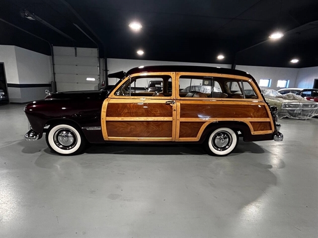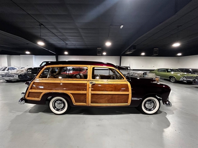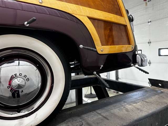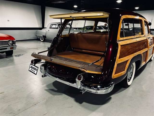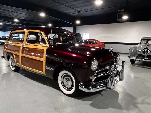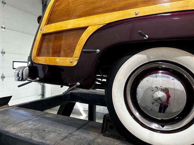 1949 Ford Custom Eight Woody Wagon High level professional restoration Title state actual miles Modified 239 Flathead V-8 Dual Stromberg 97 carburetors Three speed manual with overdrive Sunvisor “Magic Air “heater Wide white wall tires 12 Volt conversion Offenhauser cylinder heads Fenton exhaust manifolds Turn key condition