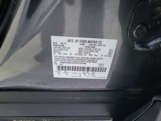 | Equipment Group 250A: 20" Machined Aluminum Wheels with Painted Pockets; Heated ActiveX Trimmed Captain's Chairs with Miko Inserts; 3.58 Non-Limited-slip Rear Axle Ratio; 10-Speed Automatic Transmission; 2.3L EcoBoost I-4 Engine; P255/55R20 AS BSW Tires; 6 |