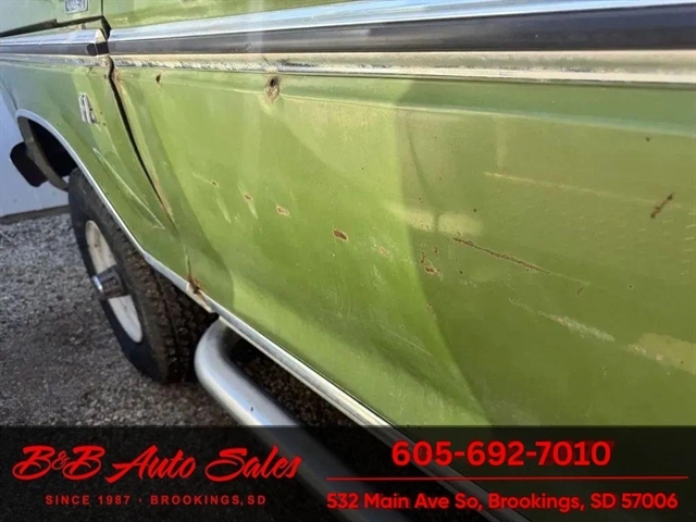 *360 V8*4x4*AUTOMATIC MECHANICAL- This F250 has been thru our inspection.*Replaced transfer case seal*Replaced pinion seal*Replaced Speedometer cableEXTERIOR- The body is in good shape. It has had a different cab put on at one time, reason for the ``F10, 1/2 ton vin`` . Ready to go to work with the flatbed. There is some rust in cab corners. See the video for an up close inspection. Text Dirk at 605-695-7391 for running and driving video`sINTERIOR- The interior is in good shape.DIRK`S COMMENTS- With 38 years of experience I will give you my opinion of the F250. It is a very affordable ``High Boy`` 3/4 ton truck. Came out of Wyoming and good solid truck to use or restore. UNDERNEATH- The underneath is solid. Floors are in good shape and have some original undercoat on them. History- A truck from WyomingTEST DRIVE- We personally test drive our vehicles so we know what they drive like. I have drove this one 10 miles and it drives good.Located at 324 W Main White,SD 57276BUY WITH CONFIDENCE as this 1974 Ford F250 has gone thru inspection and test drive. We personally work and drive these ourselves so can answer any questions you may have. We show you any issues with over 100 pictures and videos of a walk around, running and driving.VALUE- We price our vehicles to market value and try to be one of the best prices of vehicles in comparable condition. Our goal is to give you a good buy on a vehicle you are going to have fun with and enjoy. We do have a document fee but only $50 which is lower than most other dealers.LIKE IT OR RETURN IT- As being in business for 37 years we do not want to sell anybody a vehicle they do not want. As many of our vehicles are sold site unseen we will take the vehicle back and give a refund minus shipping and a restocking fee. You are responsible for the shipping both ways and a $1000 restocking fee. You have 3 days to notify us you are not happy with the vehicle and we will start the return process. Ask for more details.VIDEOS- Call, text or email for videos of driving the vehicle and of the engine running and accessories working. Text Dirk at 605-695-7391. Call or text Dirk at 605-695-7391 or Darren 605-695-9555 with any questions. B and B Auto Sales, 324 W Main White,SD 57276