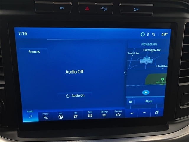 Service Records Available, 4WD, 18`` Machined-Aluminum Wheels, 4-Wheel Disc Brakes, 4x4 FX4 Off-Road Bodyside Decal, 6`` Bright Polished Running Board, 7 Speakers, ABS brakes, Adjustable pedals, Air Conditioning, Alloy wheels, AM/FM radio: SiriusXM with 360L, Auto High-beam Headlights, Auto Start-Stop Removal, Auto-dimming door mirrors, Auto-dimming Rear-View mirror, Automatic temperature control, Bed Utility Package, BoxLink, Brake assist, Bumpers: chrome, Chrome 2-Bar Grille w/4 Minor Bars, Chrome Door & Tailgate Handles w/Body-Color Bezel, Chrome Single-Tip Exhaust, Chrome Skull Caps on Exterior Mirrors, Class IV Trailer Hitch Receiver, Compass, Delay-off headlights, Driver door bin, Driver vanity mirror, Dual front impact airbags, Dual front side impact airbags, Electronic Stability Control, Emergency communication system: SYNC 4 911 Assist, Engine Block Heater, Equipment Group 501A Mid, Extended Range 36 Gallon Fuel Tank, Exterior Parking Camera Rear, Front anti-roll bar, Front Center Armrest w/Storage, Front dual zone A/C, Front fog lights, Front License Plate Bracket, Front reading lights, Front wheel independent suspension, Fully automatic headlights, FX4 Off-Road Package, Heated door mirrors, Heated front seats, Hill Descent Control, Illuminated entry, Integrated Trailer Brake Controller, Lariat Chrome Appearance Package, Leather-Trimmed 40/20/40 Front Seat, LED Box Lighting, Low tire pressure warning, Memory seat, Monotube Rear Shocks, Occupant sensing airbag, Off-Road Tuned Front Shock Absorbers, Onboard 400W Outlet, Outside temperature display, Overhead airbag, Overhead console, Panic alarm, Passenger door bin, Passenger vanity mirror, Pedal memory, Power door mirrors, Power driver seat, Power passenger seat, Power steering, Power Tailgate, Power windows, Pro Trailer Backup Assist, Radio data system, Radio: AM/FM SiriusXM w/360L, Radio: B&O Sound System by Bang & Olufsen, Rear reading lights, Rear seat center armrest, Rear step bumper, Rear window defroster, Remote keyless entry, Rock Crawl Mode, Security system, Speed control, Speed-sensing steering, Split folding rear seat, Steering wheel mounted audio controls, SYNC 4 w/Enhanced Voice Recognition, Tachometer, Tailgate Step w/Tailgate Work Surface, Telescoping steering wheel, Tilt steering wheel, Traction control, Trailer Tow Package, Tray Style Floor Liner (47W), Trip computer, Turn signal indicator mirrors, Universal Garage Door Opener, Variably intermittent wipers, Ventilated front seats, Voltmeter, Wheels: 18`` Chrome-Like PVD, Wireless Charging Pad.