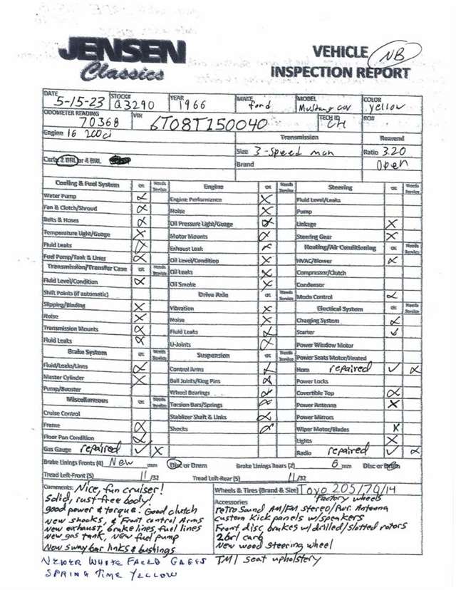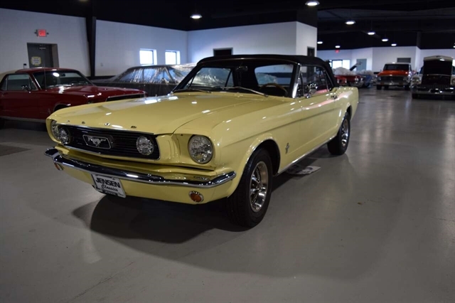 1966 Ford Mustang Convertible Presenting a double sharp 1966 Ford Mustang convertible in Springtime Yellow with a like new high end power canvas convertible top. Restoration is fresh and shows extremely well, from the fresh Springtime Yellow paint, to the all-new interior including the TMI seat upholstery with the suede inserts, The front disc brake conversion including drilled and slotted rotors, retro sound AM/FM stereo with power antenna with custom kick panels with speakers integrated. Riding on a set of Toyo steel belted radials along with the factory OEM Pony wheels. All kinds of new mechanicals/components etc. including new shocks, new front control arms, new exhaust, new brake lines, new fuel lines, new gas tank, new fuel pump, new sway bar links, bushings and on and on and on. For being a six cylinder, three speed manual this thing is far from doggy. Fun to drive with all kinds of torque and power.