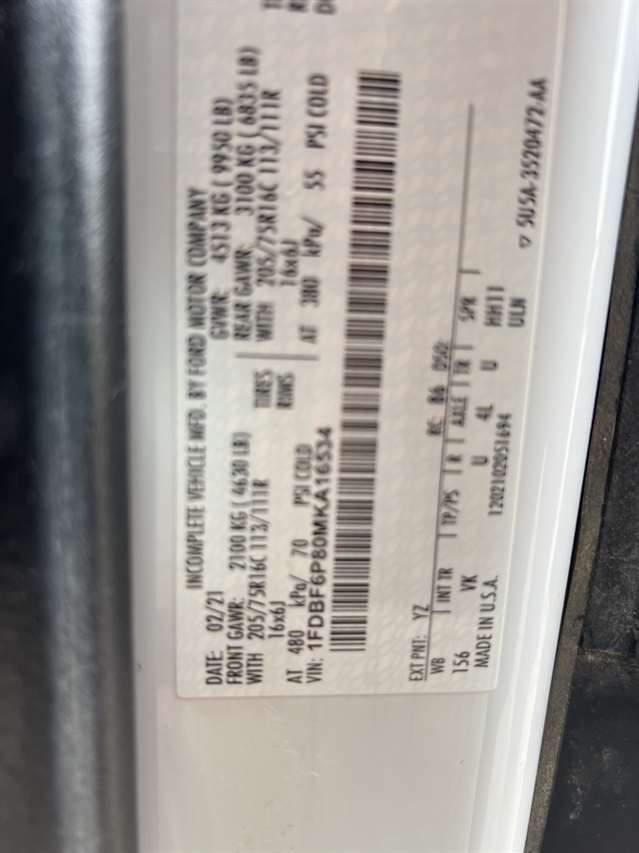Oxford White 2021 Ford Transit-350 Box Van RWD 10-Speed Automatic with Overdrive V6 *Bluetooth, Keyless Entry, Steering Wheel Controls, V6, 10-Speed Automatic with Overdrive, RWD, Oxford White, Dark Palazzo Grey Vinyl, Air Conditioning, AM/FM Stereo, Chrome-Trimmed Halogen Headlamps, Cruise Control, Dual rear wheels, Exterior Upgrade Package, Front Fog Lamps, Order Code 501A, Power windows, Telescoping steering wheel, Wiper Activated Headlamps.