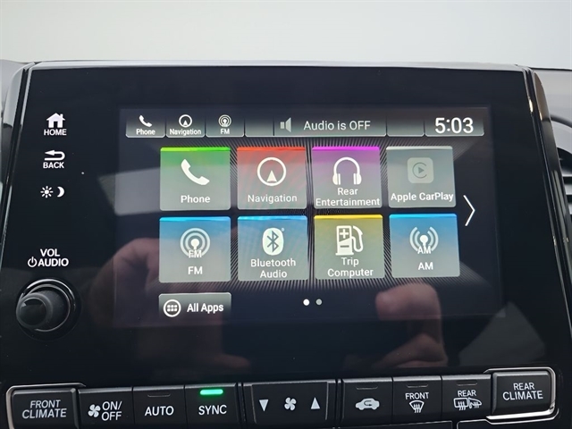 - Radio: 160-Watt AM/FM/HD/SiriusXM Audio System -inc: 6 speakers, subwoofer, Bluetooth HandsFreeLink, Bluetooth streaming audio, MP3/auxiliary input jack, radio data system (RDS), SMS text message function, 2.5-amp USB smartphone/audio interface port in center console, 2 2.5-amp USB charging ports in second row, CabinControl remote compatibility, 8" display audio w/high-resolution (720P) electrostatic touch-screen and customizable feature settings, Apple CarPlay/Android Auto, illuminated steering wheel-mounted audio controls and black fin-type roof-mounted antenna