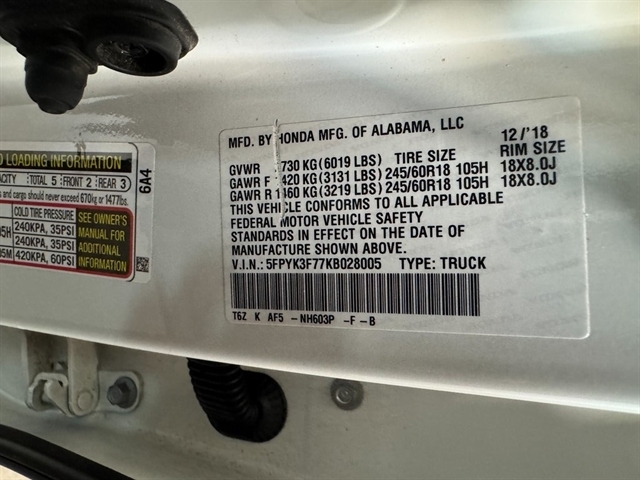 White Diamond Pearl 2019 Honda Ridgeline RTL-E AWD 6-Speed Automatic 3.5L V6 SOHC i-VTEC 24V *Leather Seats, Navigation System, Sunroof/Moonroof, Bluetooth, Backup Camera, Collision Warning System, Adaptive Cruise Control, Heated Seats, Blind-Spot Monitors, Lane Keeping Assist, Touchscreen Controls, Keyless Access with Push Button Start, Automatic Headlights, Keyless Entry, Multi-zone Climate Control, Steering Wheel Controls, Premium Wheels, Trailer Hitch, Remote Start, Beige Leather, Apple CarPlay/Android Auto, Auto-dimming Rear-View mirror, Automatic temperature control, Bluetooth® Hands-Free Link, Front fog lights, Heated steering wheel, Honda Satellite-Linked Navigation System, Memory seat, Navigation system: Honda Satellite-Linked Navigation System, Power driver seat, Power passenger seat, Radio: AM/FM/MP3 w/Nav System & Truck-Bed Audio, Rear window defroster, SiriusXM Radio, Telescoping steering wheel, Wheels: 18`` Exclusive Machine-Finished Alloy.