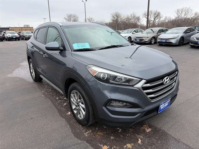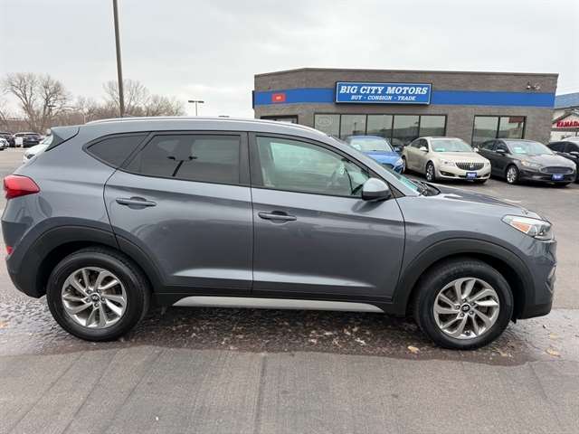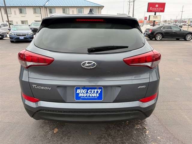 Step into the driver`s seat of this sleek Gray 2018 Hyundai Tucson and get ready for an unforgettable ride! With a powerful 2.0L DOHC 16V I4 engine under the hood and a smooth 6-speed automatic transmission, this SUV is equipped to conquer any road ahead. From city streets to winding country roads, the automatic full-time all-wheel drive ensures optimal traction and stability in any driving conditions.Not only does this Tucson deliver exceptional performance, but it also offers a comfortable and spacious interior with heated front bucket seats and a 60-40 folding rear bench seat. The 6-speaker audio system provides crystal clear sound, while the integrated roof antenna keeps you connected to your favorite tunes.Safety is a top priority in this Hyundai Tucson, with features like side impact beams, dual front airbags, and a convenient back-up camera to assist with parking and reversing. Plus, rest assured with the included Carfax report, giving you peace of mind about the vehicle`s history.So why wait? Come experience the thrill of driving this dynamic 2018 Hyundai Tucson for yourself! Visit Big City Motors to shop our great deals. You can call 605-338-8001 to schedule your test drive today.