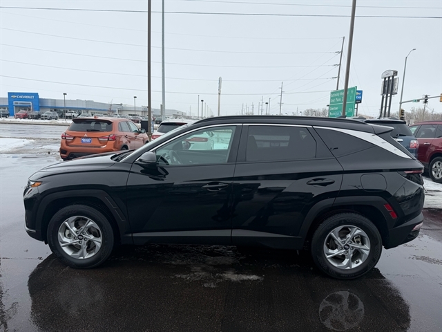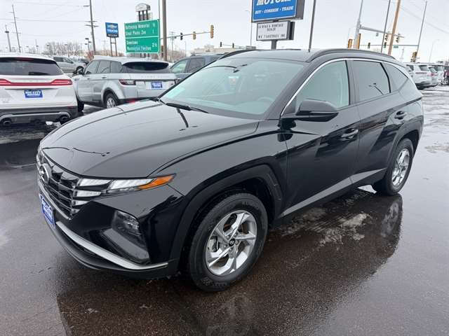 Get ready to hit the road in style with this sleek and powerful black 2023 Hyundai Tucson! This dynamic SUV is equipped with a fuel-efficient 2.5L GDI MPI DOHC 4-cylinder engine paired with an 8-speed automatic transmission, making every drive smooth and enjoyable. The all-wheel-drive system ensures optimal traction in any road conditions, while the trailer sway control and hill descent control add a layer of safety and stability. This Tucson comes with a plethora of features tailored to enhance your driving experience, from heated front seats and a power liftgate to smart cruise control and lane following assist. With its spacious interior and ample cargo space, you`ll have room for all your adventures. Plus, you can feel confident knowing that a Carfax report is available for this vehicle. Don`t miss out on the opportunity to make this versatile and reliable 2023 Hyundai Tucson yours today! Visit Big City Motors to shop our great deals. You can call 605-338-8001 to schedule your test drive today.