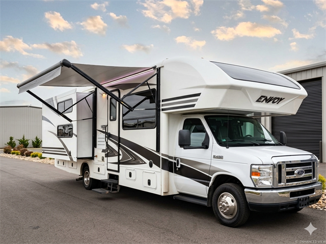 Take the whole family on unforgettable adventures in this exceptionally clean 2018 Jayco Envoy 200 Series 31L Class C motorhome—featuring a hard-to-find bunkhouse floorplan, low mileage, and top-tier features like automatic leveling. Built on the dependable Ford E-450 Super Duty chassis, this coach is powered by a 6.8L Triton V10 and has just 21,500 miles, offering many years of reliable travel ahead.