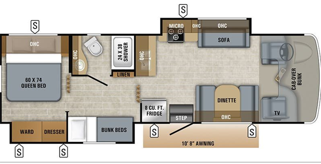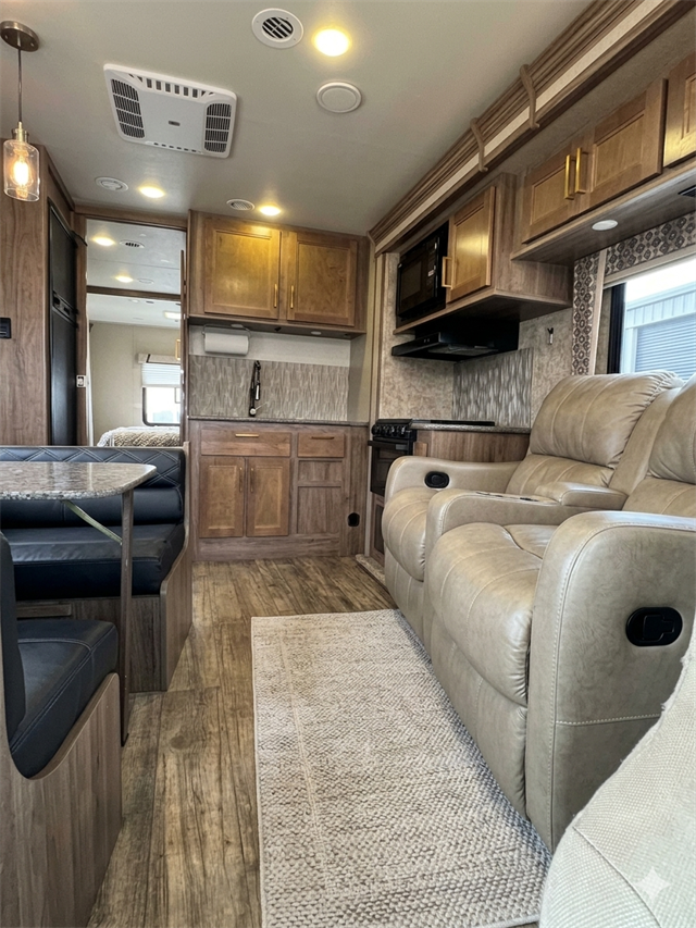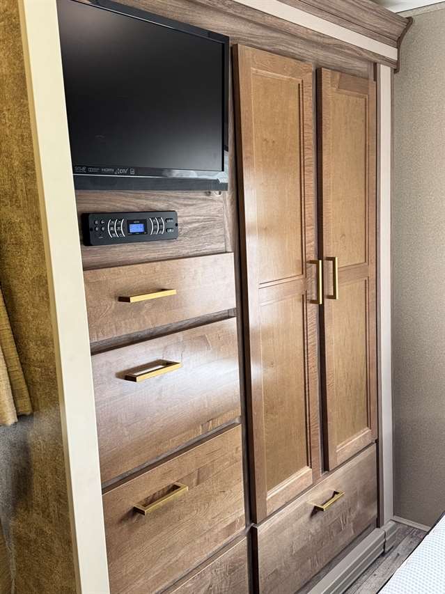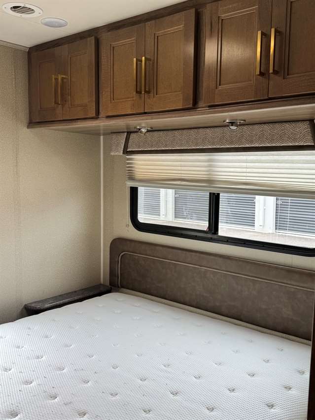 Designed for maximum versatility, the 30Xbunkhouse model comfortably sleeps up to 8 people thanks to its double-over-double bunks, cab-over bed, queen rear bedroom, convertible dinette. This family-focused layout rarely hits the market—making this one a true gem for those looking for spacious, well-built comfort in a manageable 32-foot coach.