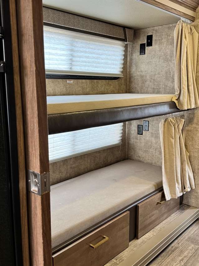 Dual slide-outs: one in the living area and one in the bunk/bedroom zone