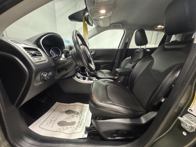***CLEAN CARFAX***, **LOCAL TRADE IN**, BLUETOOTH, ALL BOOKS AND KEYS, **REMOTE START**, **Back-Up Camera**, **HEATED SEATS & STEERING WHEEL**, **APPLE CARPLAY/ ANDROID AUTO**, Compass Latitude, 4D Sport Utility, 2.4L I4, 4WD, Olive Green Pearlcoat, Black Cloth, 115V Auxiliary Power Outlet, 4-Way Power Lumbar Adjust, 4-Wheel Disc Brakes, 6 Speakers, 7.0`` Touch Screen Display, ABS brakes, Air Conditioning, Brake assist, Cluster 7.0`` Color Driver Info Display, Cold Weather Group, Compass, Electronic Stability Control, Four wheel independent suspension, Front fog lights, Fully automatic headlights, Heated door mirrors, Heated Front Seats, Heated Steering Wheel, Outside temperature display, Panic alarm, ParkView Rear Back-Up Camera, Popular Equipment Group, Power 8-Way Driver/Manual 6-Way Passenger Seats, Power door mirrors, Premium Cloth/Vinyl Bucket Seats, Quick Order Package 27J, Radio: Uconnect 4 w/7`` Display, Remote keyless entry, Remote Start System, Speed control, Split folding rear seat, Steering wheel mounted audio controls, Traction control, Wheels: 17`` x 7.0`` Silver Painted Aluminum, Windshield Wiper De-Icer.