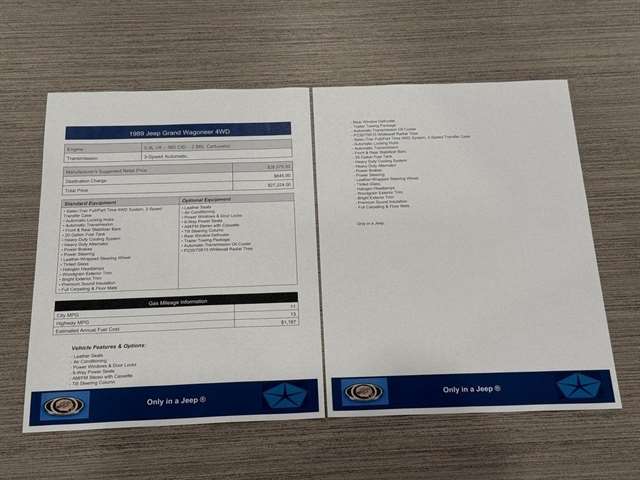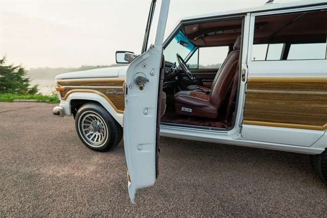 Step into the SUV that started it allthe 1989 Jeep Grand Wagoneer. Finished in white with iconic woodgrain and a burgundy leather interior, this Wagoneer carries Jeeps legendary AMC 360ci V8 (5.9L, 144hp, 280 lb-ft) paired to a 3-speed automatic and Select-Trac 4WD. With 123,677 miles, its a well-kept survivor of Jeeps most collectible era. Known as the first true luxury SUV, the Grand Wagoneer paved the way for every modern premium SUV you see today. From its plush interior to its rugged capability, this Woodie Jeep checks every box for collectors and enthusiasts alike.