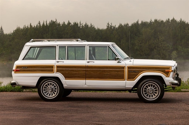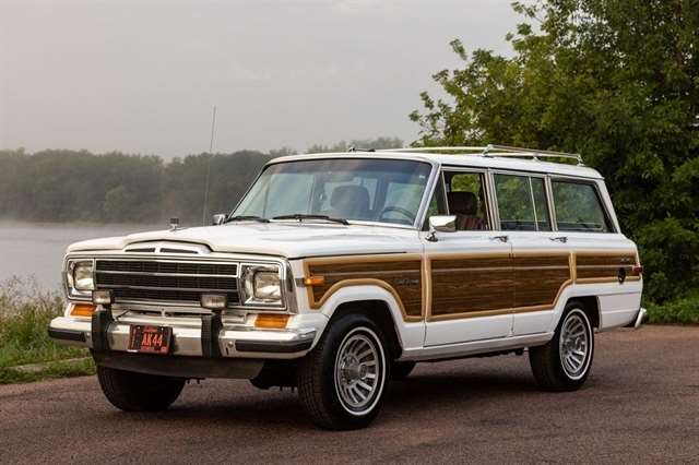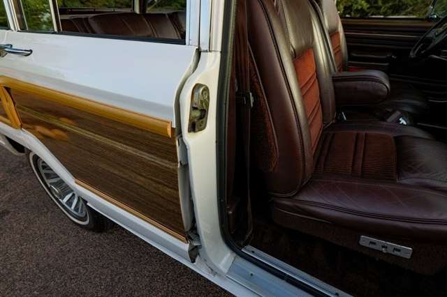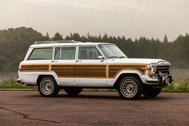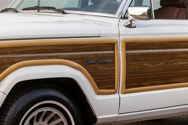 Step back into the golden age of American SUVs with this 1989 Jeep Grand Wagoneer. Featuring a 5.9L V8 (360 CID) paired to a 3-speed automatic, Select-Trac 4WD, and Jeeps signature woodgrain styling, this Wagoneer represents the original luxury SUV. Finished in white with woodgrain paneling over a burgundy leather interior, this example shows 123,677 miles and is a rare survivor of Jeeps iconic flagship model. With rising collectability, this Grand Wagoneer is a prime addition to any classic garage.
