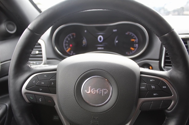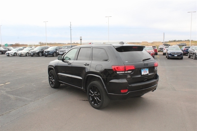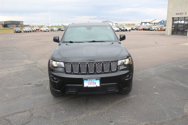 Altitude Appearance Package (Altitude Grille, Dark Day Light Opening Moldings, Dark Headlamp Bezel Finish, Delete Laredo Badge, Gloss Black Jeep Badging, Gloss Black Rear Fascia Applique, Hill Descent Control, Quadra-Trac II 4WD System, Rear Accent/Body Color Fascia, Rear Fascia Black Molded in Color Step Pad, Selec-Terrain System, and Wheels: 20`` x 8.0`` Gloss Black Aluminum), Quick Order Package 2GM Laredo X (DISC) (Black Suede Seats w/Black Stitching, Heated Steering Wheel, Power Liftgate, Remote Start System, Security Alarm, and Steering Wheel Mounted Audio Controls), 3.45 Rear Axle Ratio, 4-Wheel Disc Brakes, 6 Speakers, ABS brakes, Air Conditioning, Alloy wheels, AM/FM radio: SiriusXM, Anti-whiplash front head restraints, Apple CarPlay/Android Auto, Auto-dimming Rear-View mirror, Automatic temperature control, Brake assist, Bumpers: body-color, Cloth Bucket Seats, Compass, Delay-off headlights, Driver door bin, Driver vanity mirror, Dual front impact airbags, Dual front side impact airbags, Electronic Stability Control, Emergency communication system: SiriusXM Guardian, Four wheel independent suspension, Front anti-roll bar, Front Bucket Seats, Front Center Armrest w/Storage, Front dual zone A/C, Front fog lights, Front reading lights, Fully automatic headlights, Heated door mirrors, Illuminated entry, Knee airbag, Leather Shift Knob, Low tire pressure warning, Navigation System, Normal Duty Suspension, Occupant sensing airbag, Outside temperature display, Overhead airbag, Overhead console, Panic alarm, ParkView Rear Back-Up Camera, Passenger door bin, Passenger vanity mirror, Power door mirrors, Power driver seat, Power steering, Power windows, Radio data system, Radio: Uconnect 4C Nav w/8.4`` Display, Rear anti-roll bar, Rear reading lights, Rear seat center armrest, Rear window defroster, Rear window wiper, Remote keyless entry, Speed control, Speed-sensing steering, Speed-Sensitive Wipers, Split folding rear seat, Spoiler, Steering wheel mounted audio controls, Tachometer, Telescoping steering wheel, Tilt steering wheel, Traction control, Trip computer, Variably intermittent wipers, and Wheels: 18`` x 8.0`` Fine Silver Aluminum.