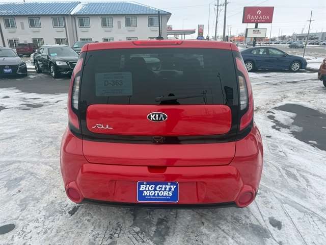 Ready to cruise in style in this sleek Red 2015 Kia Soul? With its 2.0L GDI I4 engine and 6-speed automatic transmission, this car offers a smooth and efficient ride that`s perfect for city streets or open highways. The front-wheel drive and 3.27 axle ratio make for easy handling and smooth acceleration, while the 18 alloy wheels and fog lamps add a touch of sporty sophistication.Step inside the cabin and sink into the power adjustable driver`s seat with lumbar support, and enjoy the convenience of cruise control and HVAC with underseat ducts. With plenty of storage options including front cupholders, door bins, and cargo space lights, this Kia Soul is as practical as it is stylish.Safety features like side impact beams, airbags, and a back-up camera provide peace of mind on every journey. And with a Carfax report available, you can hit the road knowing this Kia Soul is as reliable as it is fun to drive. Don`t miss out on your chance to own this exciting and versatile vehicle! Visit Big City Motors to shop our great deals. You can call 605-338-8001 to schedule your test drive today.