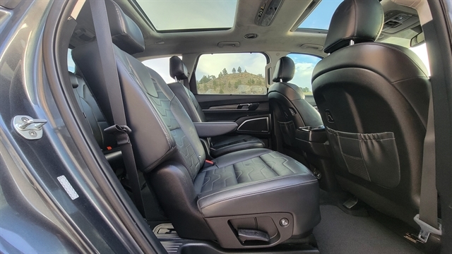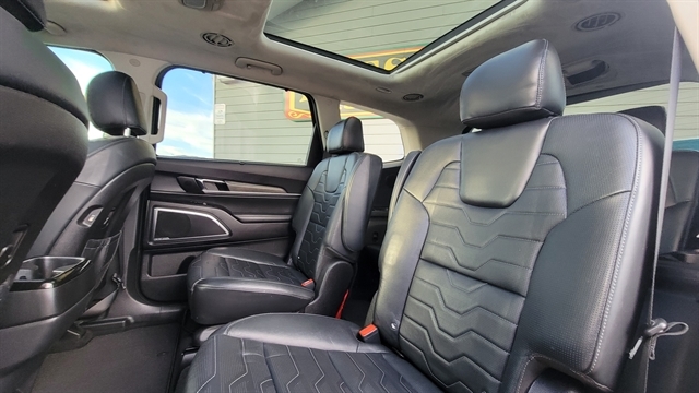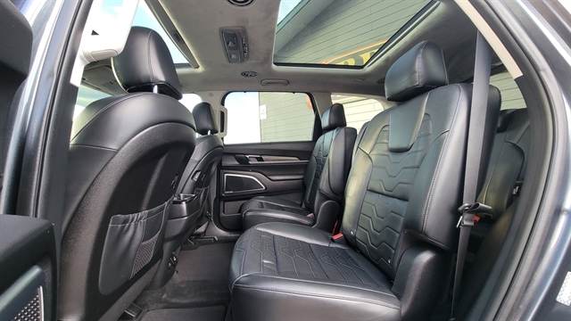STEP INSIDE AND ENJOY A PREMIUM NAPPA LEATHER INTERIOR WITH A PREMIUM CLOTH HEADLINER, POWER FOLDING MIRRORS, AND DUAL POWER FRONT SEATS, INCLUDING A 12-WAY POWER DRIVER SEAT WITH MEMORY POSITIONS. STAY COMFORTABLE YEAR-ROUND WITH HEATED AND COOLED FRONT SEATS, HEATED AND COOLED SECOND-ROW CAPTAIN’S CHAIRS, AND A THIRD-ROW BENCH SEAT, OFFERING SEATING FOR UP TO SEVEN PASSENGERS.