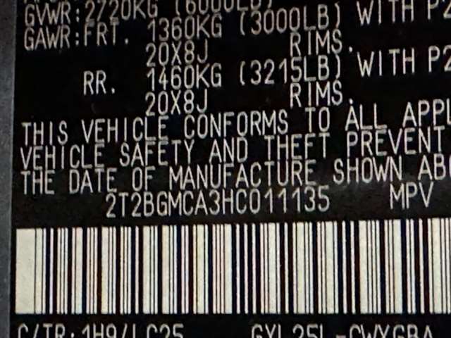 | VIN | 2T2BGMCA3HC011135 |