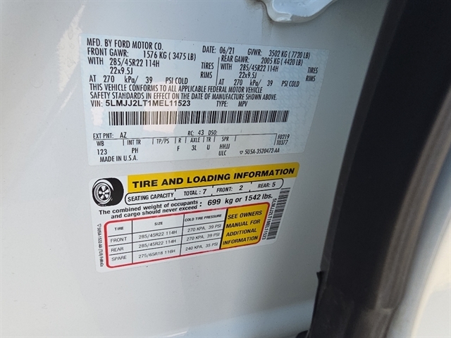 CARGO CONVENIENCE PACKAGE: Chrome Roof Rack with Black Crossbars. LUXURY PACKAGE: Perfect Position Seats (30-Way) with Active Motion; Revel Ultima Audio System with 20-Speakers. HEAVY DUTY TRAILER TOW PKG: Heavy-Duty Radiator; Trailer Brake Controller; Trailer Sway Control; Pro-Trailer Backup Assist; Class IV with 4-Pin and 7-Pin Connectors; Two-Speed Transfer Case; Smart Trailer Tow. Equipment Group 201A: 22" 12-Spoke Bright Machined Aluminum Wheels; Premium Leather Heated/ventilated Perfect Position Seats; 3.73 Axle Ratio; .TWIN-TURBOCHARGED 3.5L V6; .10-SPEED AUTOMATIC O/D TRANS; 285/45R22 AS BSW Tires; 7. 625 lbs Payload Package GVWR; Revel AM/FM/HD/MP3 Audio System. Pristine White. **Equipment listed is based on original vehicle build and subject to change. Please confirm the accuracy of the included equipment by calling the dealer prior to purchase.**