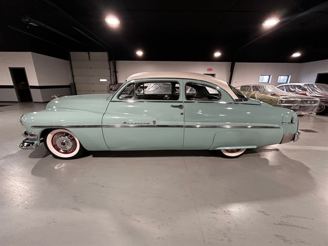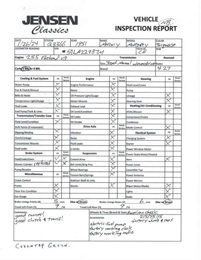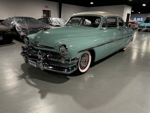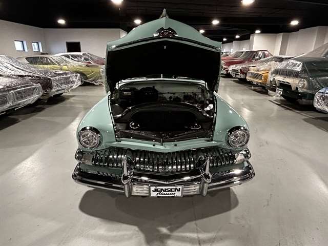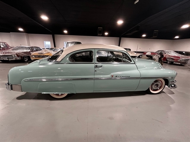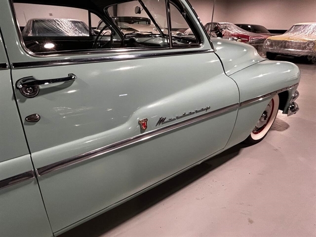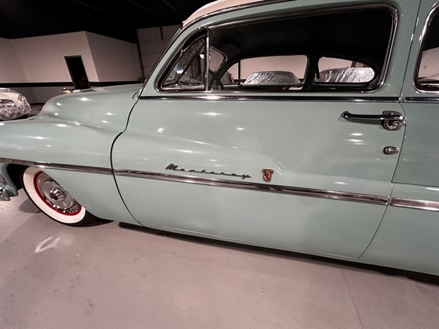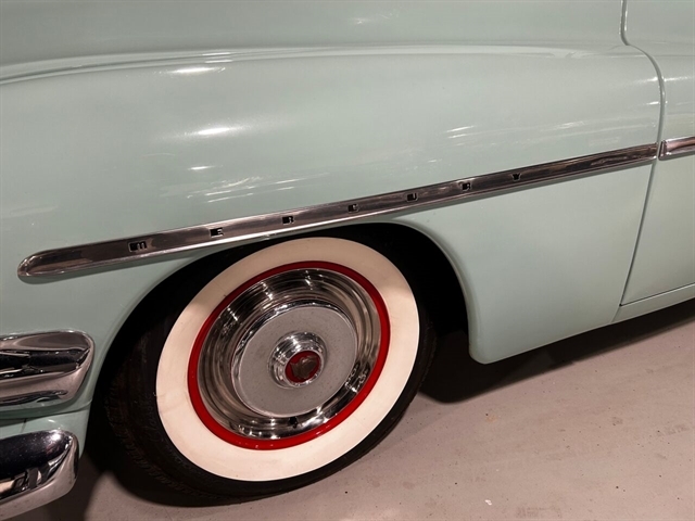 1951 mercury Monterey Coupe New for Mercury in 1951, a new grille that was integrated with the signal lights appeared in 1951. Vertical taillights replaced the horizontal type found on the 1949 and 1950 Mercurys. New, lower rear quarter panel trim made the wraparound bumper appear to extend even further than before. Chrome gravel shields and rocker panels, a vinyl or canvas roof and customer interior were standard on the Monterey coupe. Great looking, great running, check and check. There is nothing not to like on this 1951 Monterey Coupe. Great colors, Coventry Green with a contrasting white top with wide white wall tires just complete this 1951 icon. Powered by 255 CI flathead V-8 mated to a three-speed manual transmission with overdrive and just a pleasure to drive. Factory radio, heater, clock, windshield wipers, lights, and turn signals all are operational. Truly a turnkey 1951.