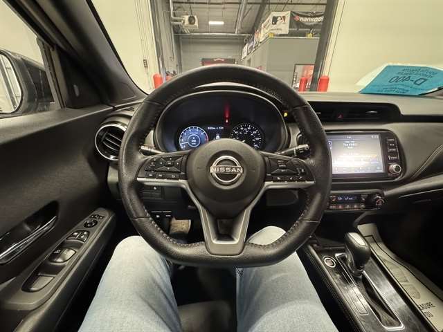 ***CLEAN CARFAX***, **LOCAL TRADE IN**, **LEATHER**, BLUETOOTH, ALL BOOKS AND KEYS, **REMOTE START**, **Back-Up Camera**, **HEATED SEATS & STEERING WHEEL**, **APPLE CARPLAY/ ANDROID AUTO**, Kicks SR, 1.6L 4-Cylinder DOHC 16V, FWD, Boulder Gray Pearl, Black w/Cloth Seat Trim, 4-Wheel Disc Brakes, ABS brakes, Active Cruise Control, Air Conditioning, AM/FM radio: SiriusXM, Apple CarPlay/Android Auto, Auto High-beam Headlights, Blind Spot Warning, Bose Personal Plus Audio System, Brake assist, Compass, Electronic Stability Control, Exterior Parking Camera Rear, Front fog lights, Fully automatic headlights, Heated door mirrors, Heated Front Seats, Heated Steering Wheel, NissanConnect Services, Outside temperature display, Power door mirrors, Premium Package, Prima-Tex Appointed Seat Trim, Rear Parking Sensors, Remote keyless entry, Split folding rear seat, Steering wheel mounted audio controls, Technology Package, Traction control, Wheels: 17`` Black Alloy.