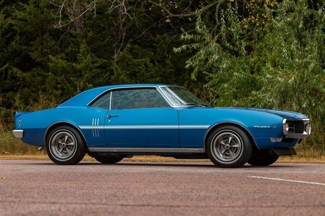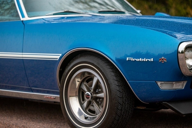 1968 Pontiac Firebird Sprint. Rare OHC 4.1L Inline-6, automatic, Blue/Blue, frame-off restored with show-quality undercarriage, Rally II wheels, power steering & brakes. Only 183 miles since restoration. One of the finest Firebird Sprints available. Stock #UK600723.